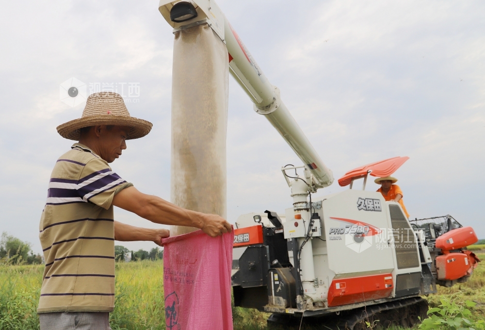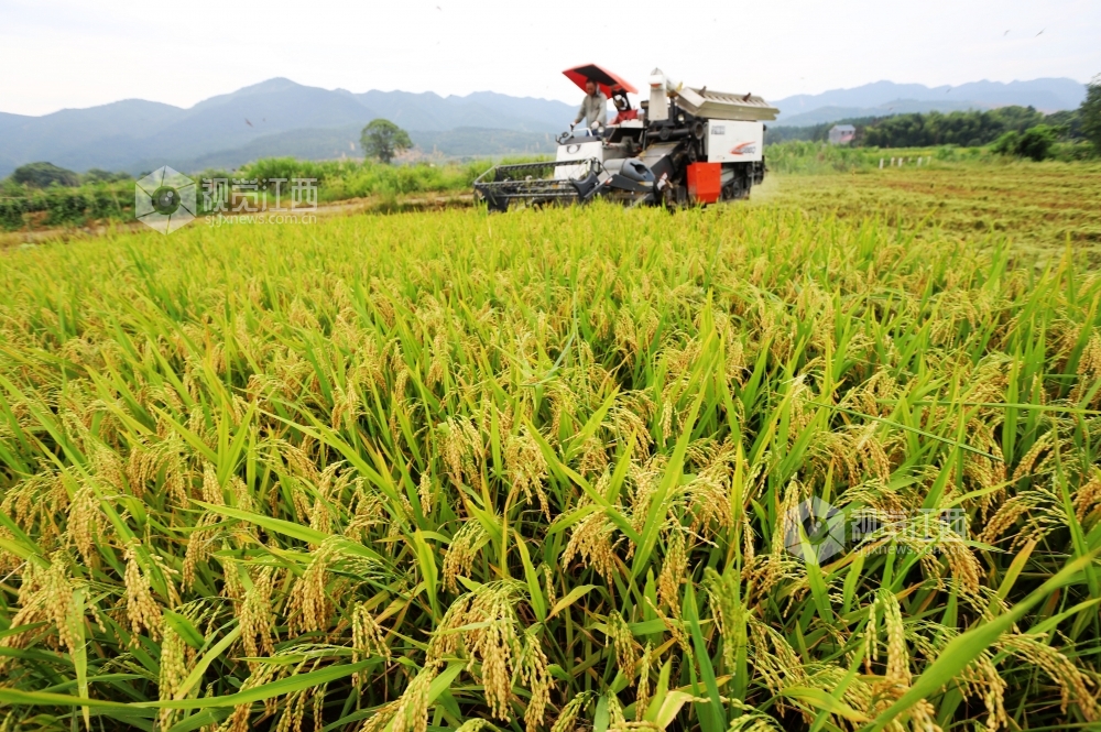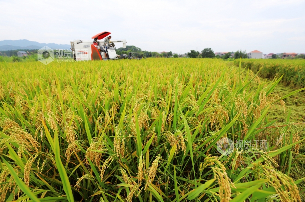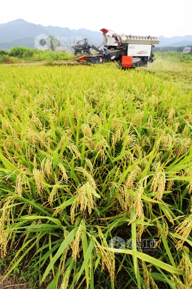 7月15日,江西省安福县洲湖镇汶源村收割机在收割早稻,安福是全国商品粮基地县之一,今年该县早稻平均亩产均在450公斤左右,预计全县今年总产可达16.2万吨,较去年增长2.5%。眼下,该县进入早稻收割高峰期,该县组织2000余台收割机开展作业,截止7月14日,该县早稻收割进度过半,田头地角处处是丰收的喜悦。