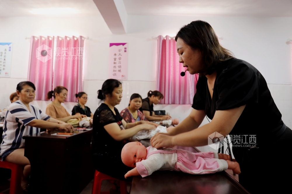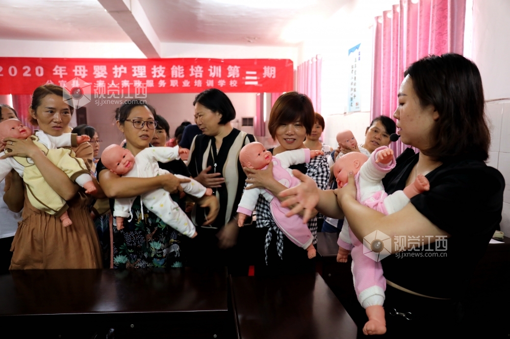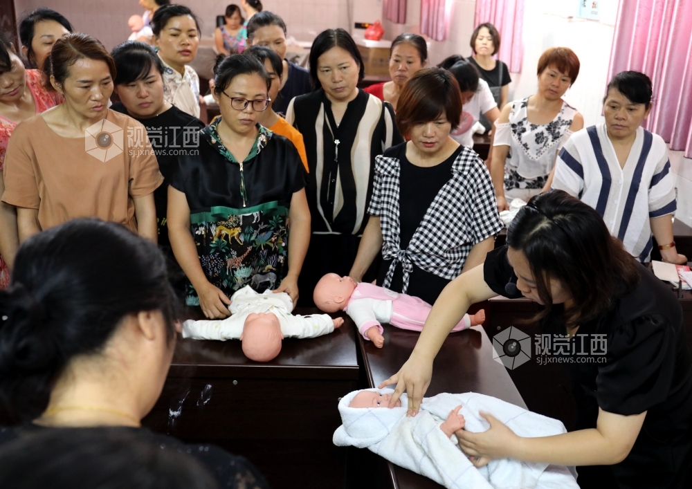 7月15日,江西省分宜县家政服务培训学校专业老师在给学员讲授母婴护理实操知识。针对今年疫情特殊时期 ,该县组织下岗失业人员、困难职工、贫困户等30人,参加2020年母婴护理家政培训,助力她们掌握“一技之长”,顺利就业增收。目前,该县共举办了3期母婴护理技能家政培训班,培训近100人。