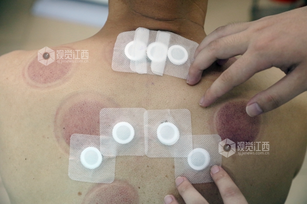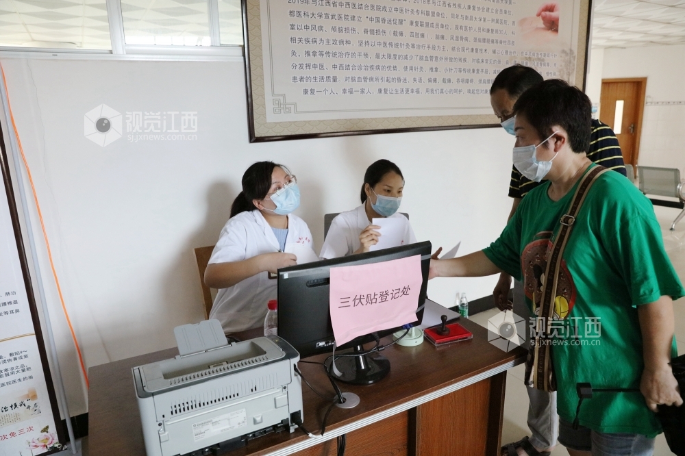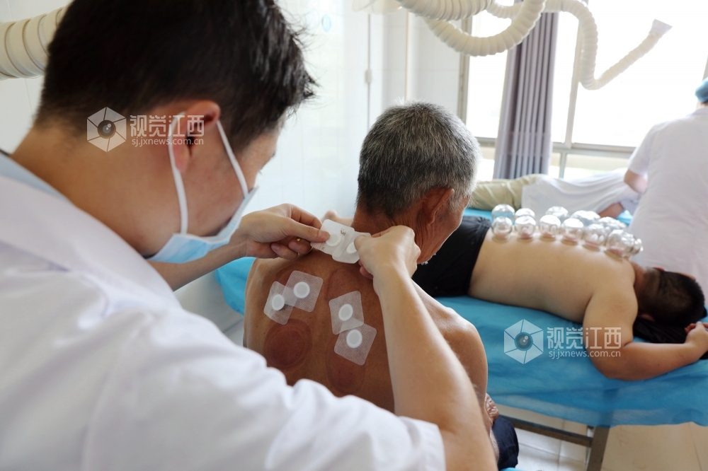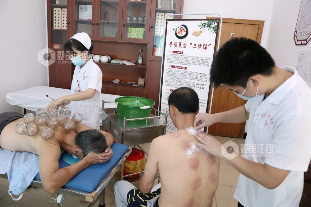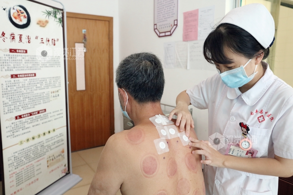 2020年7月16日,市民在江西省南丰县中医院贴敷。当日是今年夏季入伏的第一天,江西省南丰县一些市民来到当地中医院进行中药穴位贴敷。“冬病夏治”是我国传统中医药的特色疗法,通过在人体的穴位上进行药物敷贴,鼓舞正气,增强抗病能力,从而达到防治疾病的目的。