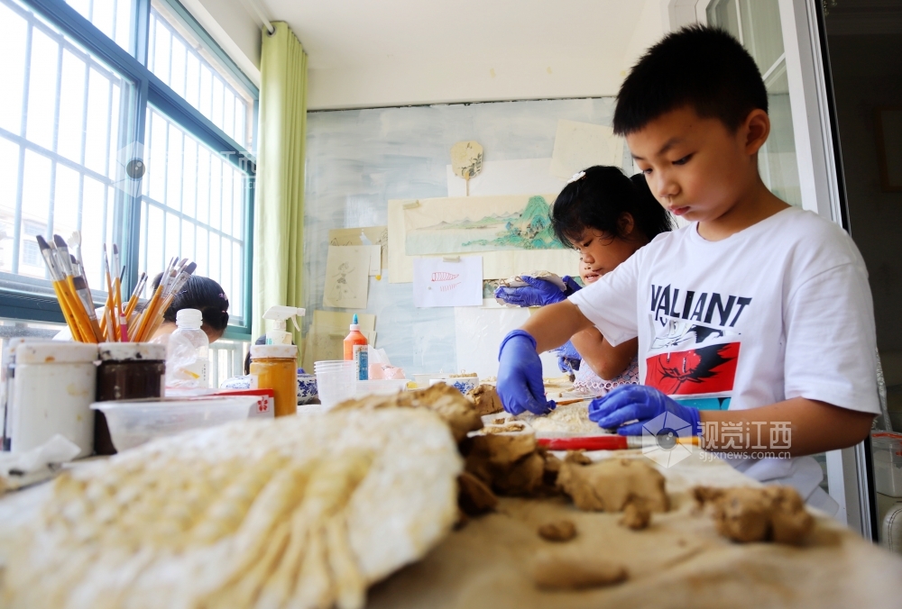 7月16日,安福县平都镇观音堂社区的孩子们在体验“生物考古”。体验中,孩子们在文化志愿者的指导下通过陶土制作、造型、精雕、倒模、挖掘、上色等环节,模拟古生物化石发掘出土过程,还原远古生物的遗体、生活痕迹、生态环境、生长结构等。模拟“生物考古”,能提高孩子们的艺术创作能力,让孩子们增长古生物知识,享受考古乐趣。