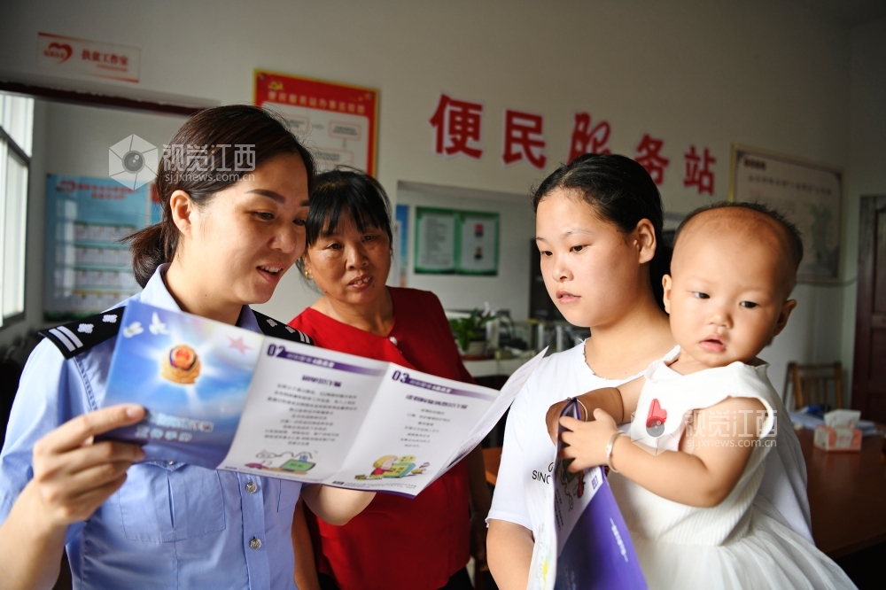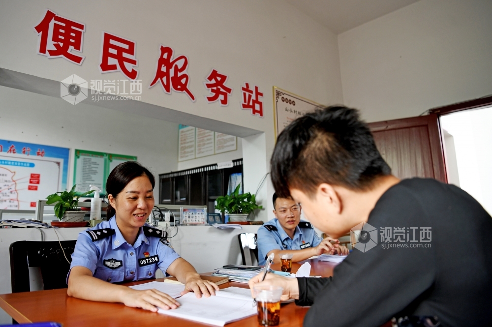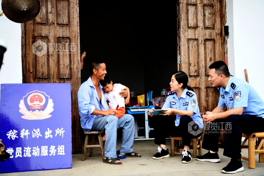 2020年7月15日,江西省上饶市铅山县稼轩乡派出所民警正在上门为群众提供服务。近年来,铅山县稼轩派出所结合“百万警进千万家”活动,成立了“党员流动服务组”,把窗口服务延伸到村庄、到户,用自己多跑腿来打通为群众服务的“最后一公里”。