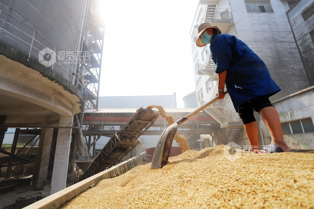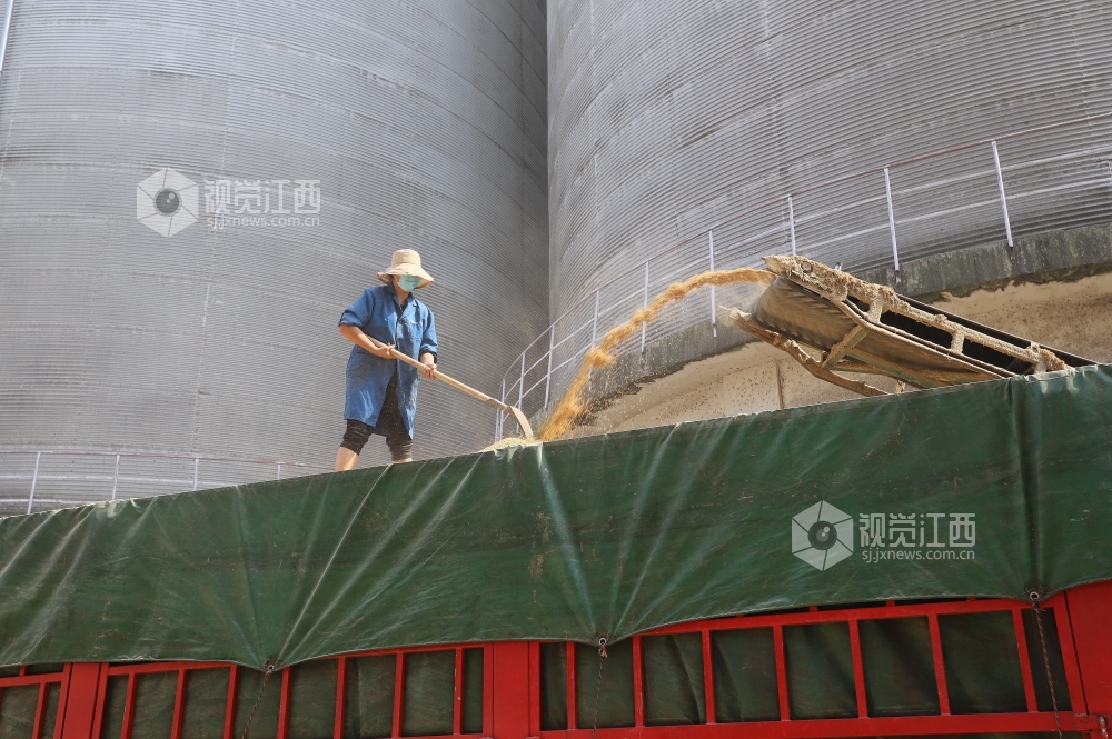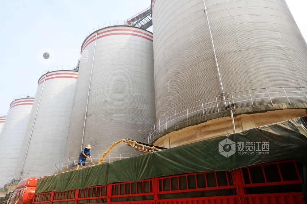7月19日,江西省安福县横龙镇农民在一家粮企销售稻谷。安福县是全国商品粮基地县之一,今年,该县在认真落实国家扶持双季稻生产、上调籼稻最低收购价等惠农强农政策的基础上,出台了一系列配套措施,调动了全县农民种粮积极性,全县早稻种植面积突破36万亩,平均亩产均在450公斤左右,预计全县今年总产可达16.2万吨,较去年增长2.5%。