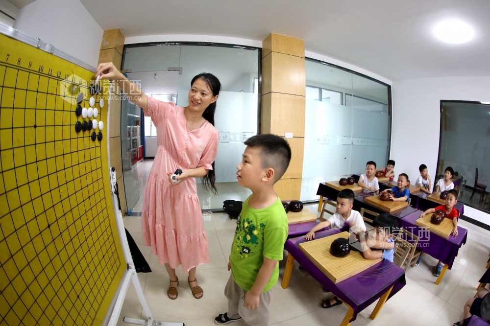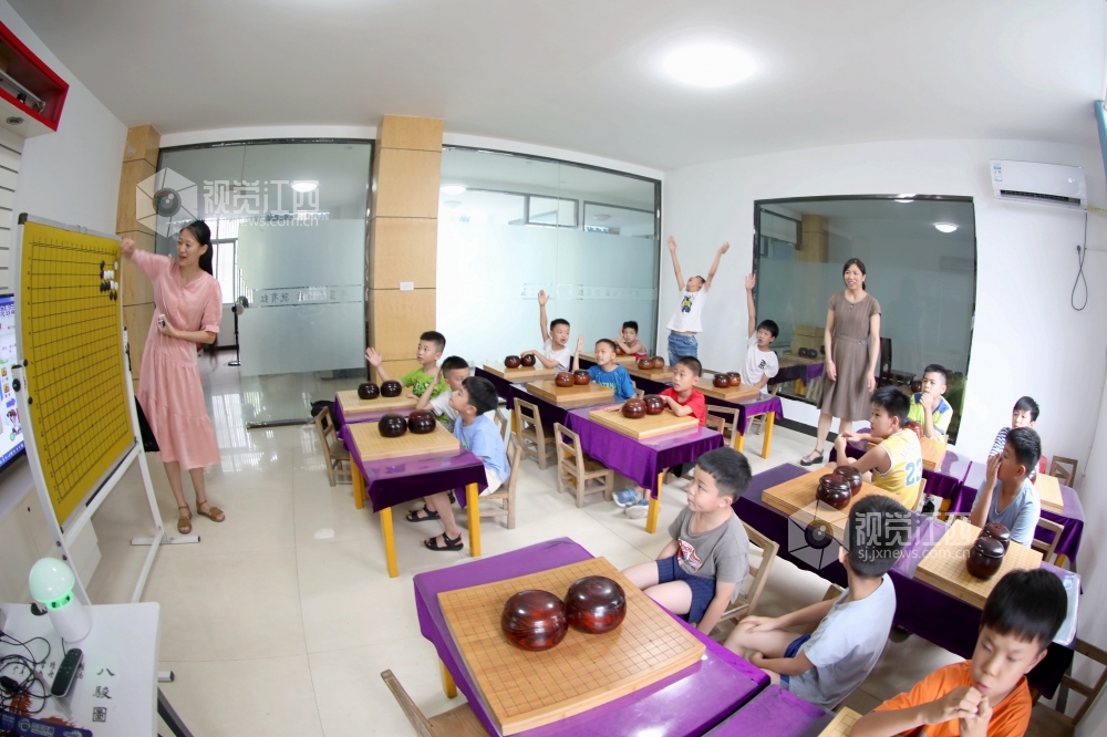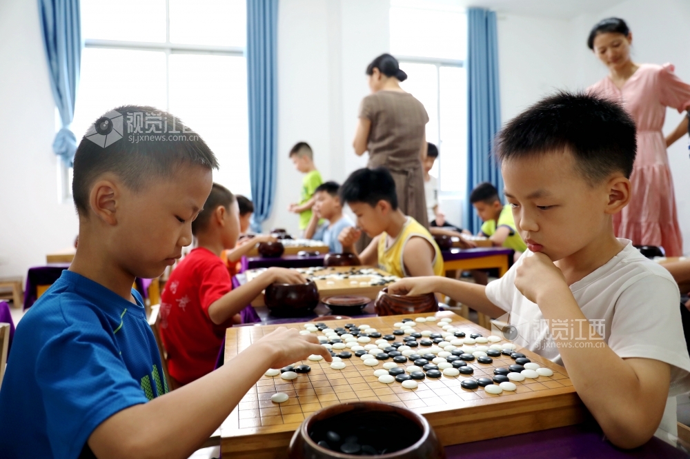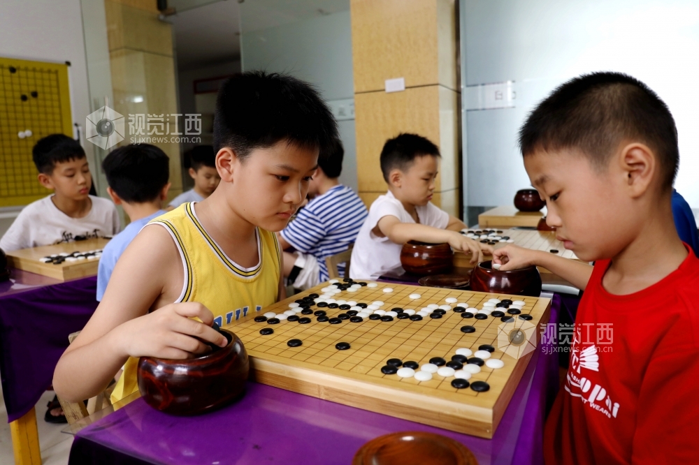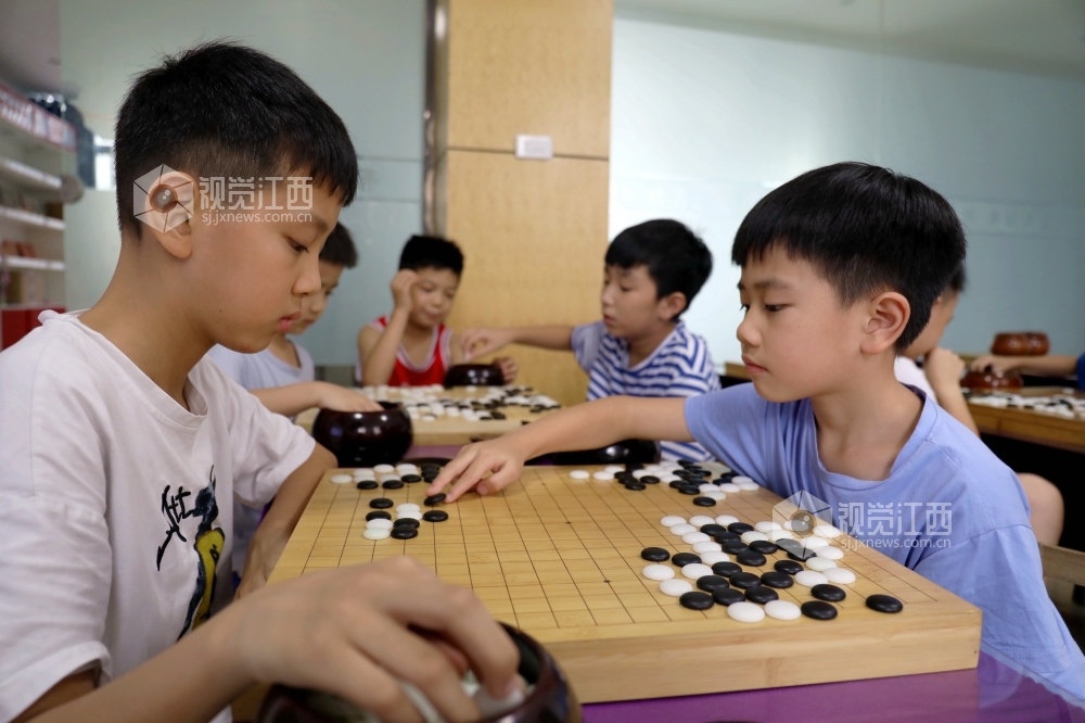 7月19日,江西省分宜县青少年围棋爱好者在该县棋院专注对弈。炎热暑期,分宜县围棋协会组织青少年开展学围棋活动,由浅入深,培养青少年对围棋的兴趣,激发他们的想象力,开发他们的运算能力及逻辑思维能力,享受学棋带来的快乐,丰富暑期生活。