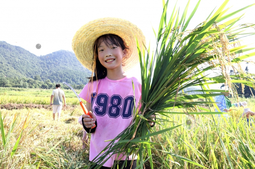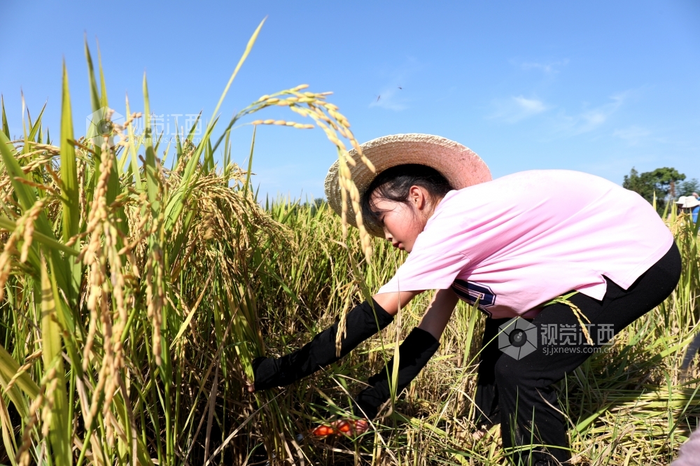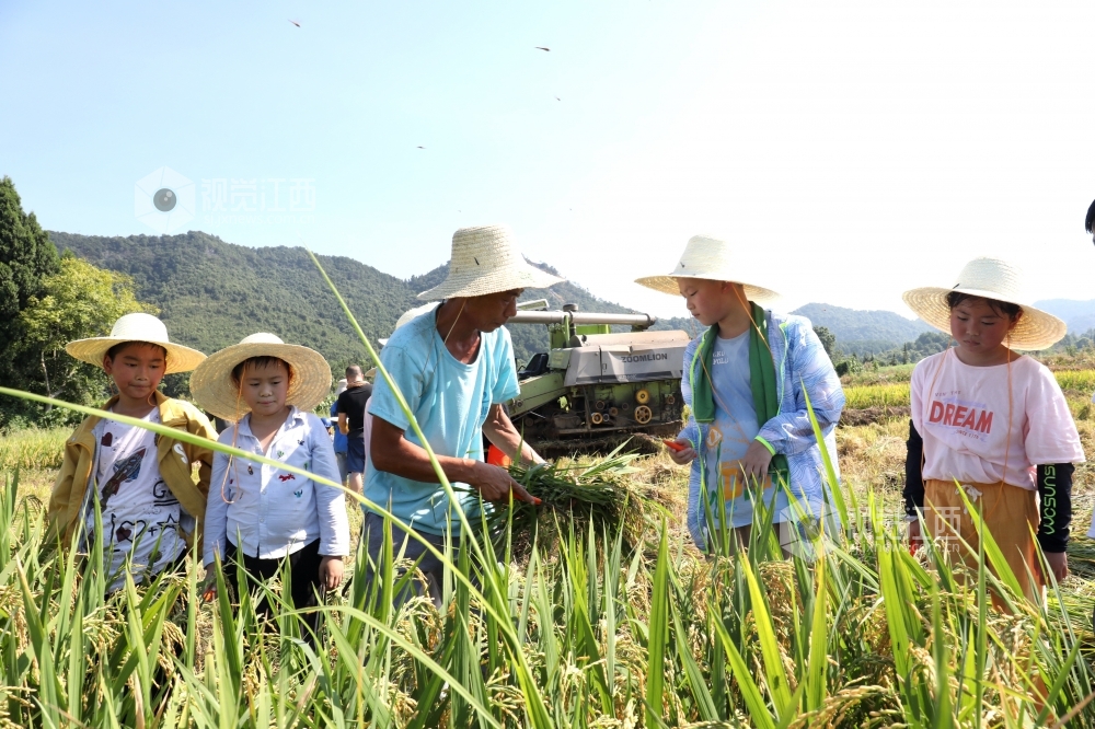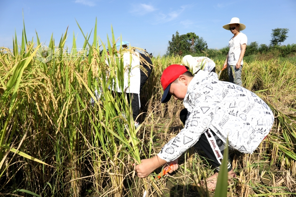 7月23日,江西省分宜县第四中心小学五年级学生在湖泽镇南溪村早稻田里体验收割稻谷的过程,感知收获粮食的艰辛和不易。时下是盛夏双抢时节,分宜四小部分老师和家长利用暑假,组织学生来到田间地头,亲身体验农耕活动,了解我国传统的农耕文化,过一个有意义的假期。
