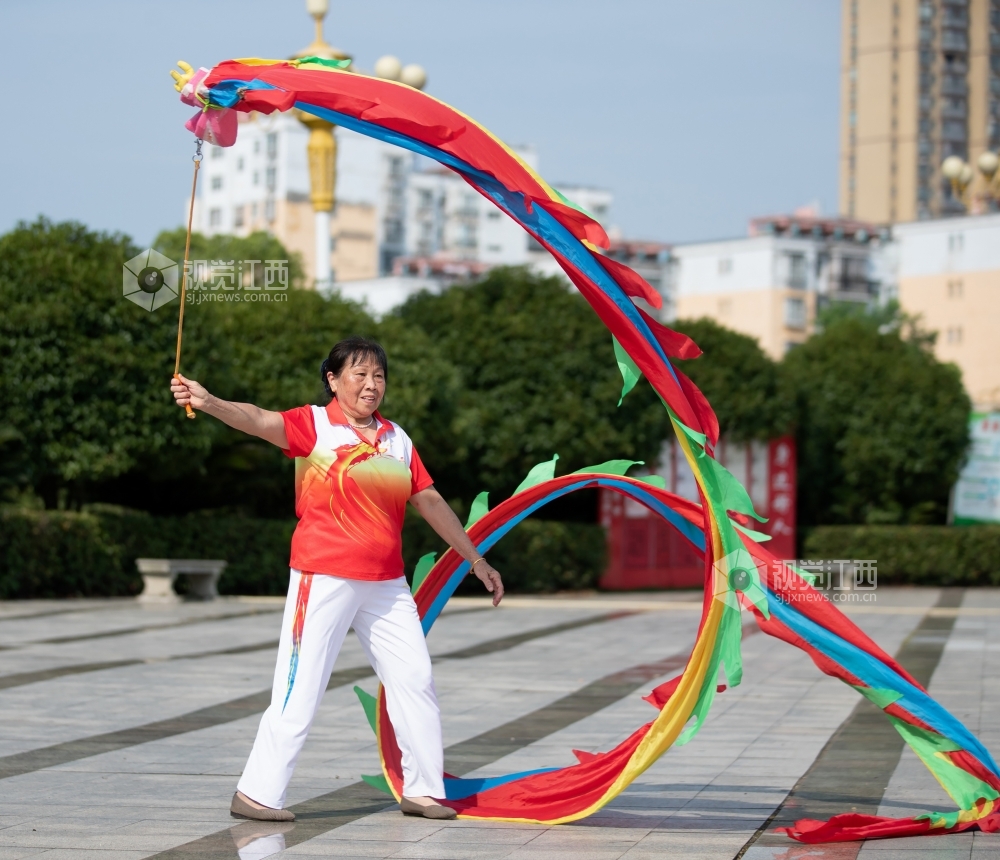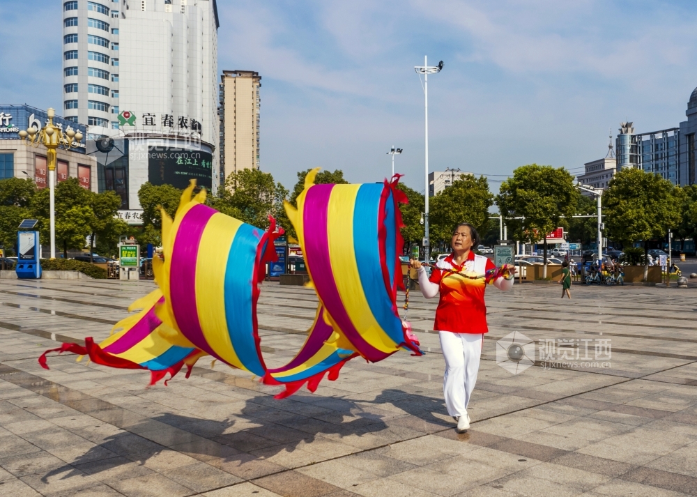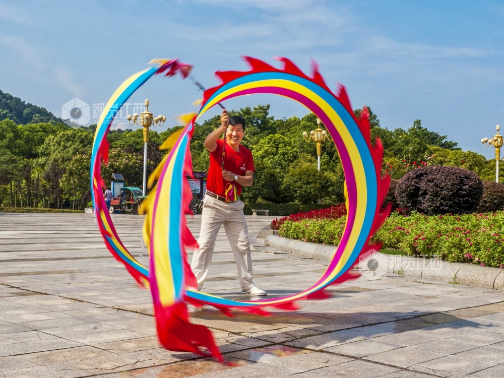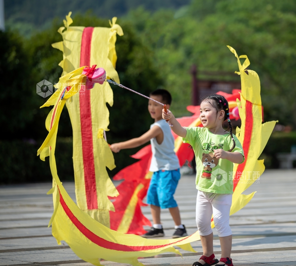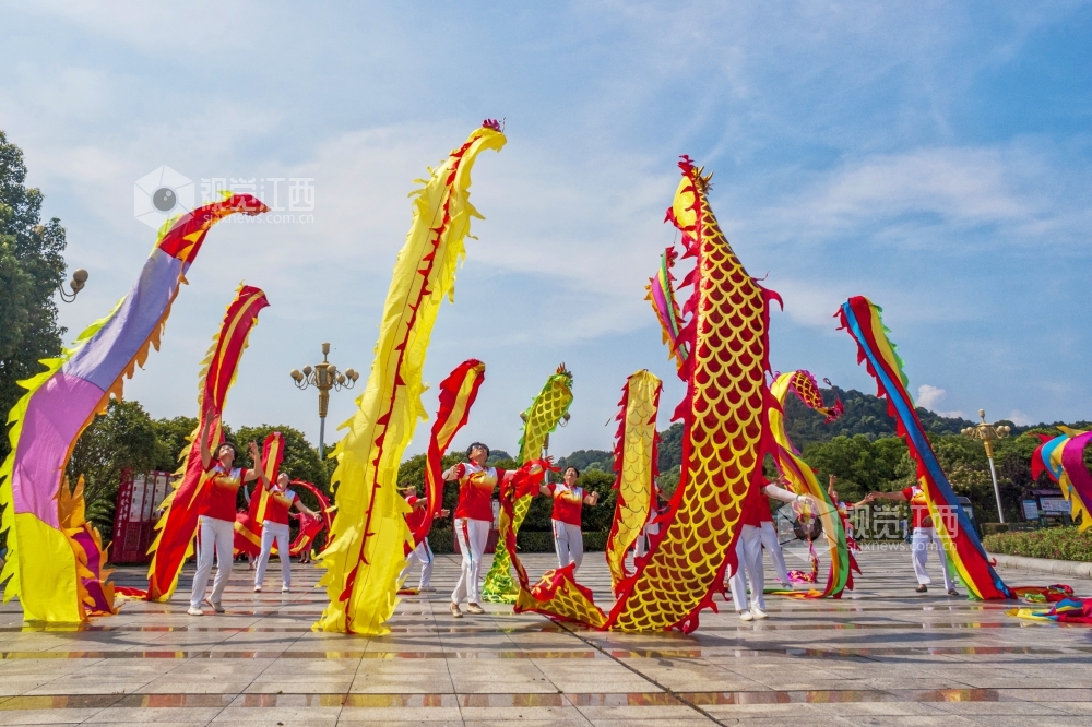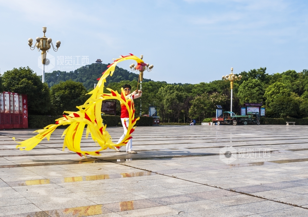 7月24日,江西省宜春龙舞队冒着炎炎夏日,在风景优美的袁山公园为市民带来了一场精彩的彩龙舞表演,赢得了市民的热烈的掌声,不少市民还当场体验。彩龙舞是一种较为简易、方便的龙舞形式,彩龙的龙衣以布为原料,分红、黄、青、白、黑五色,有彩色的龙鳞。舞龙运动是一项集娱乐、喜庆、竞技、健身于一体的体育运动。