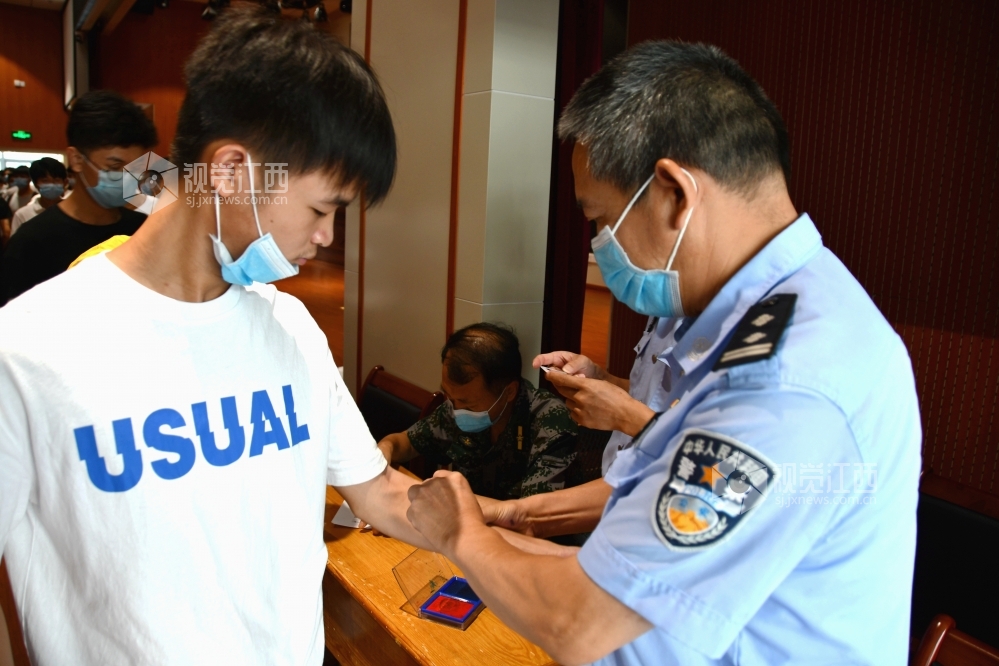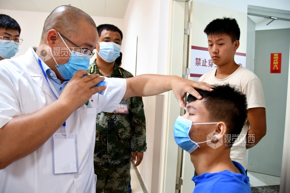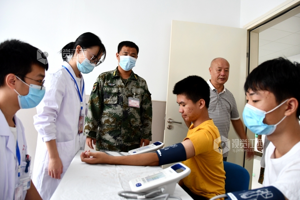 2020年7月28日,在江西省兴国县征兵体检站,该县应征青年正在接受征兵体检。当日,江西兴国县2020年夏季征兵体检工作全面启动,近1000名预征对象参加征兵体检。