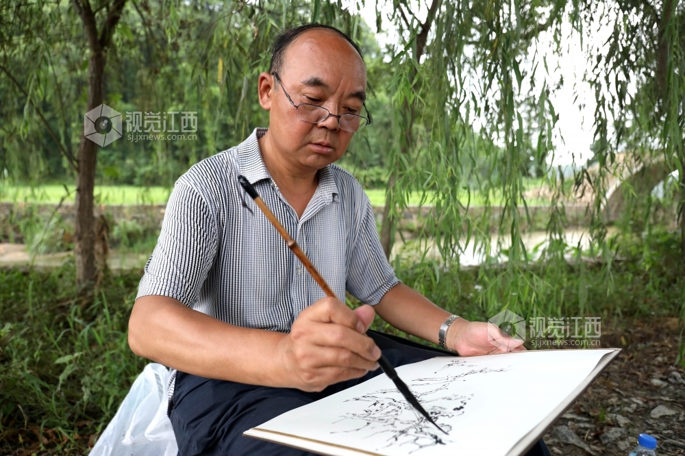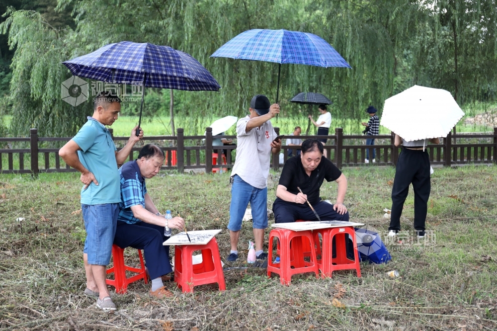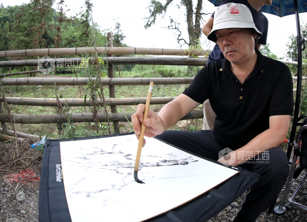 7月27日,首批参加第五届傅抱石艺术节之全国美术家“聚焦脱贫攻坚”写生创作万里行活动的美术家一行来到江西省分宜县钤山镇金鸡布村、防里村开展采风活动。美术家们先后走进金鸡布村和防里村,他们惊叹于这里的美丽风景,或靠大树下、或依小河边、或坐古樟林群中,纷纷支开画板、提起画笔,共同描绘乡村美景和当地人民奋力打赢脱贫攻坚战,步履铿锵走向小康生活的豪迈情怀。