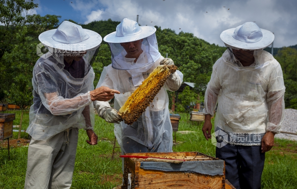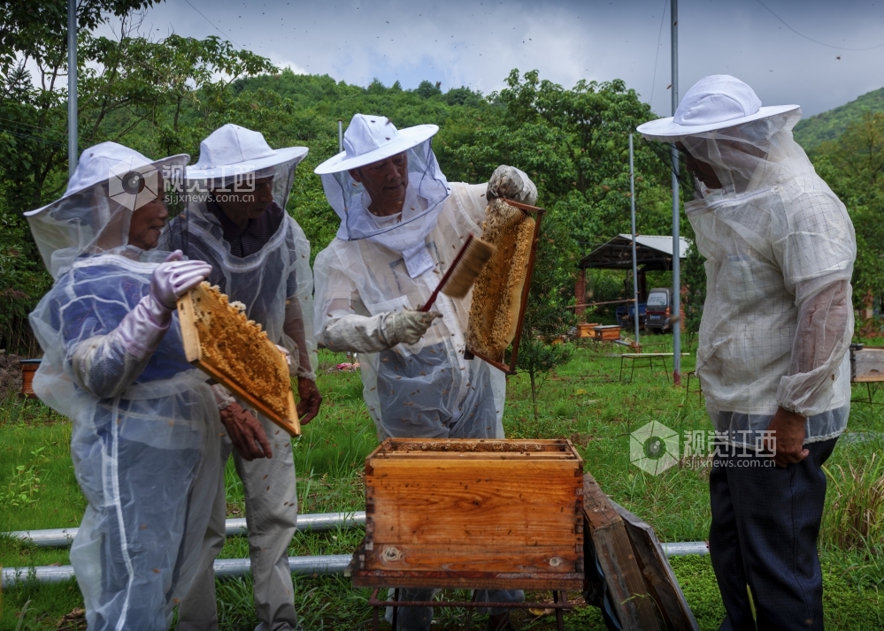 7月30日,江西鄱阳县枧田街乡大源村四面环山、山清水秀。 自全国吹响脱贫攻坚的号角后,无论是乡领导还是贫困户,对脱贫摘帽的要求非常急切,而如何让该村贫困户脱贫增收也是一直困扰枧田街乡党委政府的一大难题。通过实地走访调查结合当地资源,成立一个养蜂专业合作社,大力发展蜜蜂产业,积极引导贫困户参与,通过合作社把养蜂产业做强做大,让养蜂产业成为引导群众脱贫致富的主导产业。
