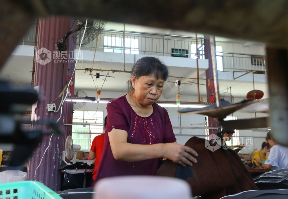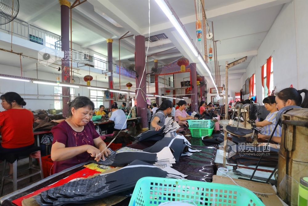 7月31日,在江西省莲花县荷塘乡井下村的一个扶贫工厂里,40多名妇女正在紧张地忙碌着,伴随着缝纫机的“哒哒”声,一张张鞋面很快在她们手中缝制完成。2008年,井下村把老祠堂改造成扶贫工厂,昔日闲置的老祠堂摇身一变成为附近村民就业增收的工厂,老祠堂焕发出新的生机和活力。