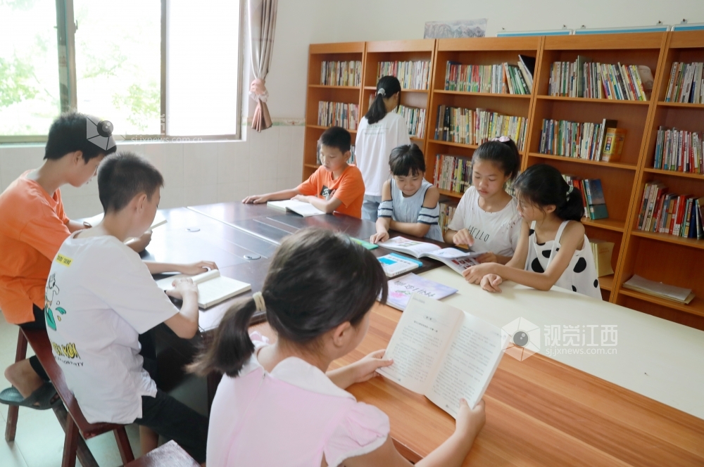 7月30日,暑假期间,江西省吉安市吉水县各村所属农家书屋纷纷全天对孩子们开放。针对留守儿童居多的现状,很多书屋还配备空调、电扇、凉茶等防暑降温设备。有条件的村庄还邀请返乡大学生为孩子们辅导功课,开展游戏,让书屋成为孩子们的“快乐驿站”。