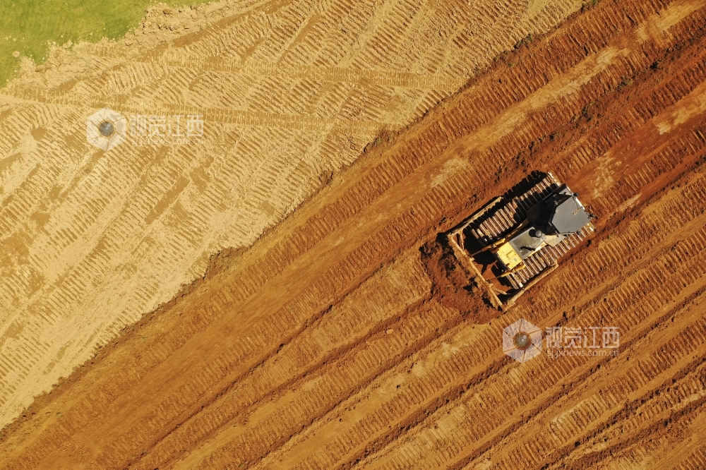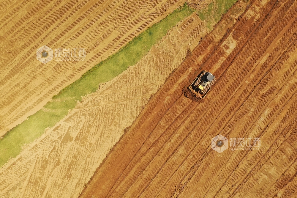 2020年7月30日,在江西省上饶市铅山县新滩乡莲花村,施工单位正在抢抓有利天气,抓紧施工,确保造地增粮项目早日完工。近年来,铅山大力推进造地增粮项目工程,保护耕地,用活土地,造福于民。
