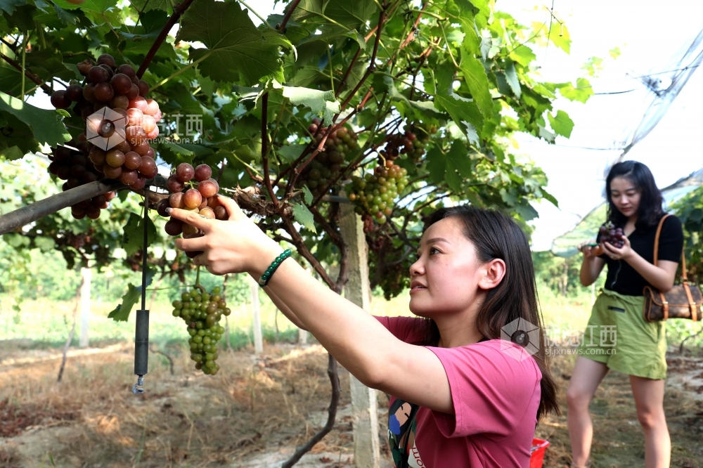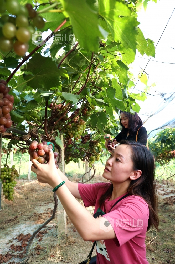8月1日,江西省分宜县双林镇宋家村大路葡萄生态产业园基地吸引众多游客前来采摘。近年来,分宜县以“美丽乡村”建设为抓手,将旅游、扶贫、乡村农业发展有机融合,积极引导人才返乡创业,通过采用“合作社+基地+贫困户”的模式,大力发展生态观光农业,培育新品种葡萄、红心火龙果等名特优水果,多渠道开辟了农民持续增收脱贫的路子。