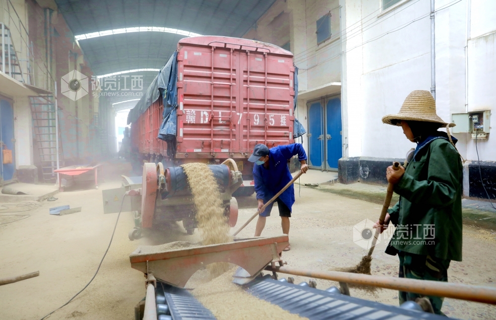 2020年8月3日,江西省吉安市吉水县朱山国家粮食储备库,工作人员正在收购夏粮入库。从2020年7月31号起,江西省吉安市吉水县粮食部门全面启动夏粮托市收购,全县各粮库腾仓并容1亿斤,全力抓好夏粮收购准备工作,切实保护农民利益。
