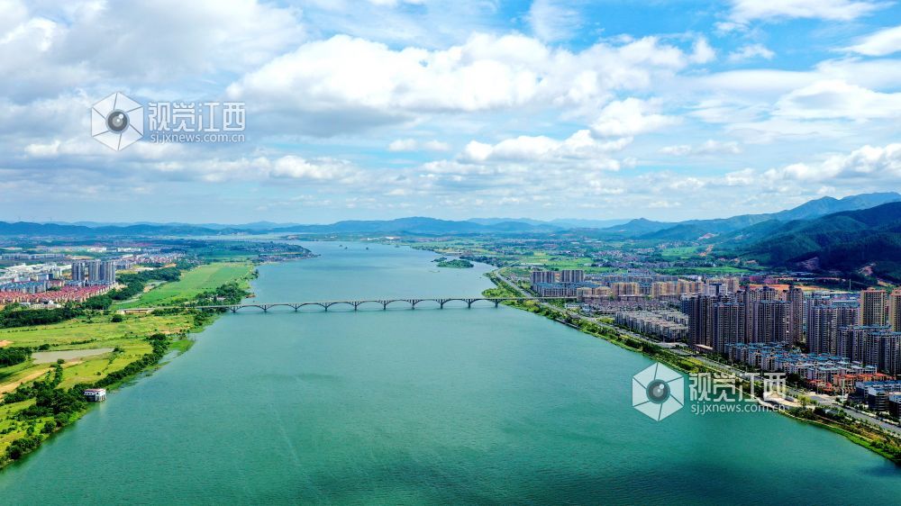 2020年8月5日,蓝天白云下的江西省吉安市吉水县县城依山傍水,水绿岸清,好一幅美丽山水画卷。近年来,江西省吉安市吉水县坚持“生态优先,绿色发展”的战略定位,全面打响碧水、蓝天攻坚战,全县处处呈现天蓝、水清、岸绿的迷人景象。