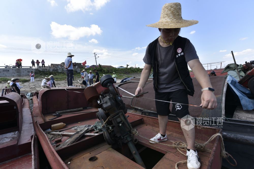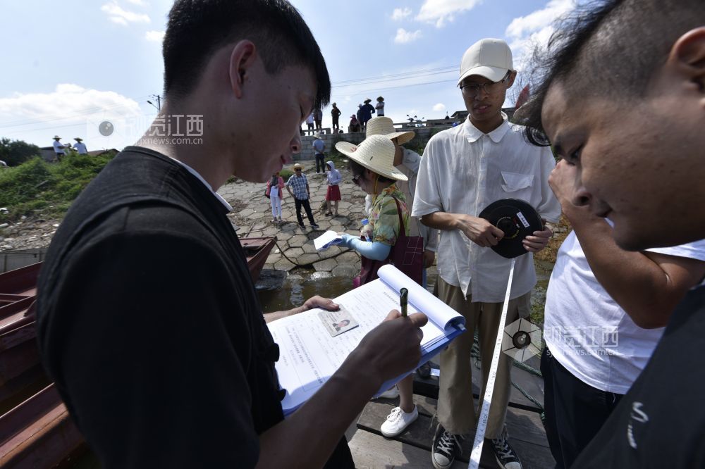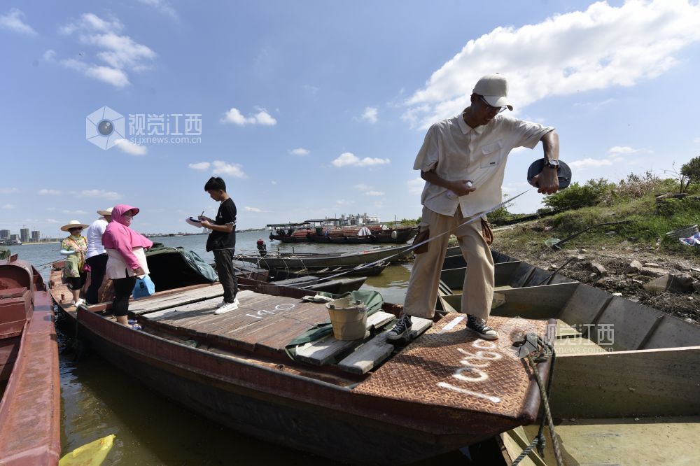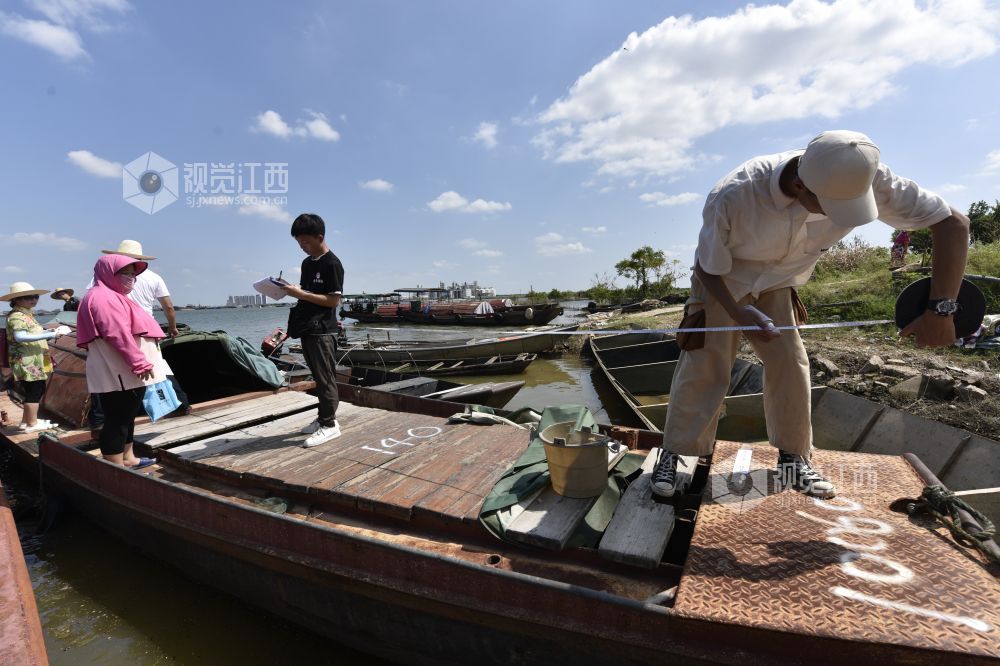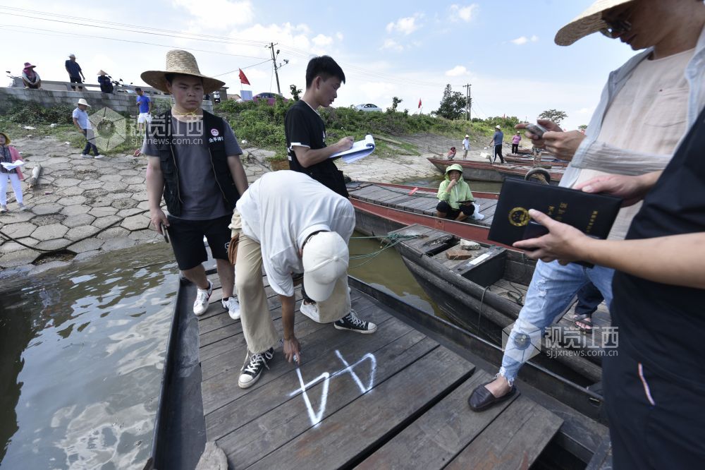 8月7日上午,在江西省南昌市东湖区扬子洲镇赣江渔业村段渔民渔船集中停靠的江边,对渔业村渔民捕捞船只的测量评估工作全面启动。由区镇两级管理部门聘请的第三方专业评估公司对每艘渔船和船主进行核查身份、核对证件、进行编号、测量数据、建档立测,当面签订确认测量数据等工作。