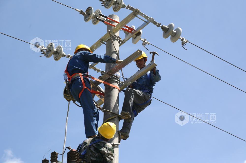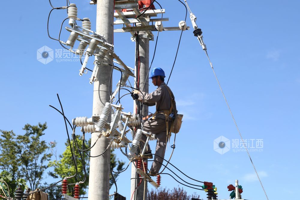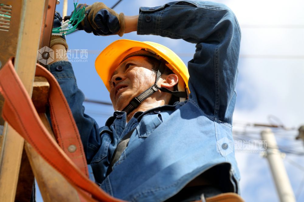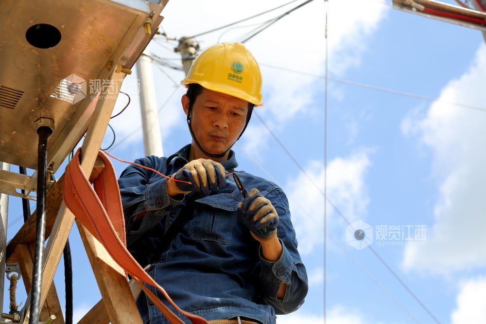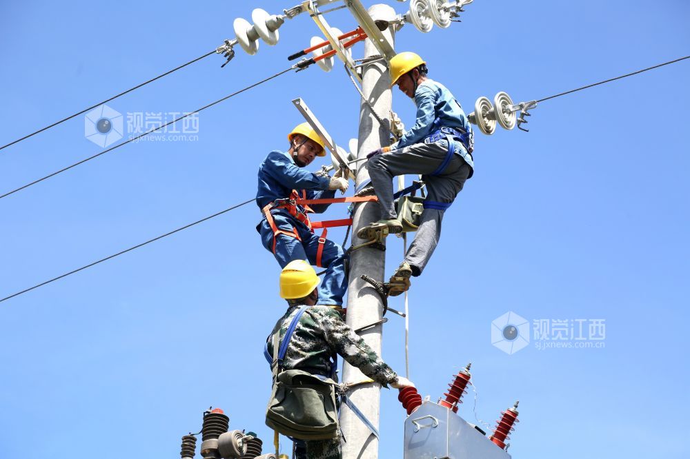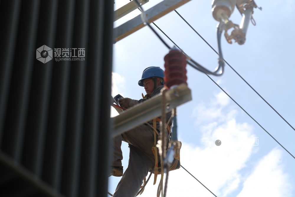 持续的高温让江西省峡江县用电负荷连续一周在5.5万千瓦高位运行。在高温“烤验”中,国网峡江供电公司电工们出动作业“汗卫”满城清凉。 8月5日,供电公司电力工人正在更换将张公石支线上#04杆原160kVA变压器更换成250kVA变压器等配套设施,实施业扩工程。