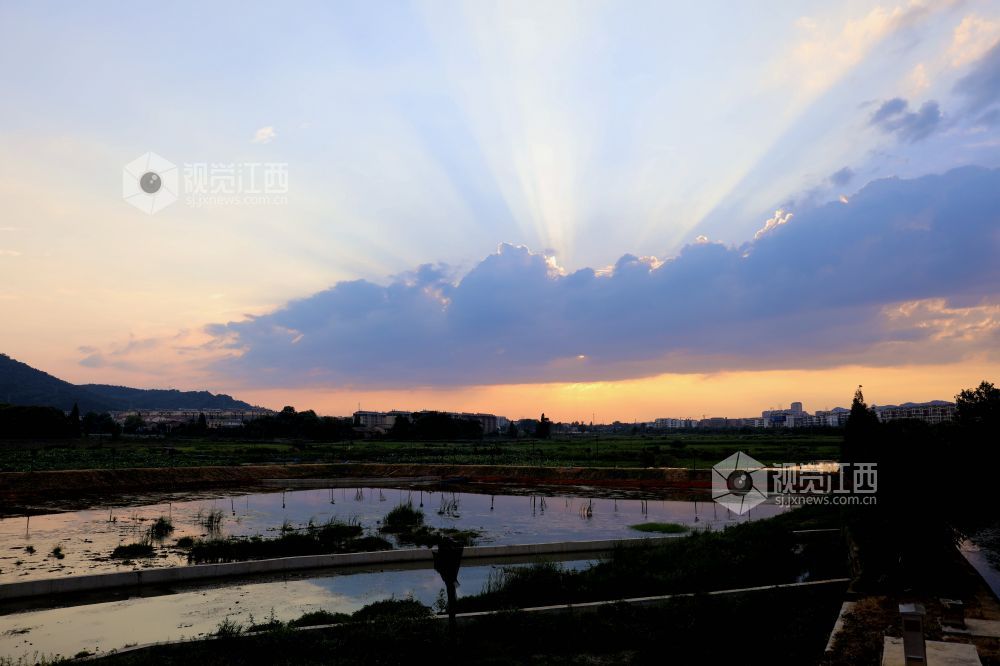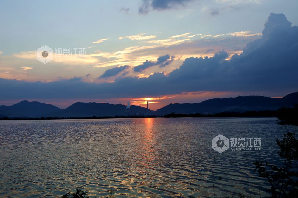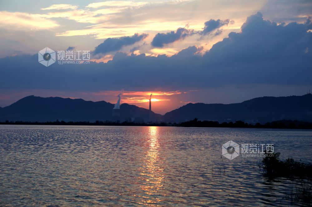 江西分宜:霞光四射钤阳湖美如画