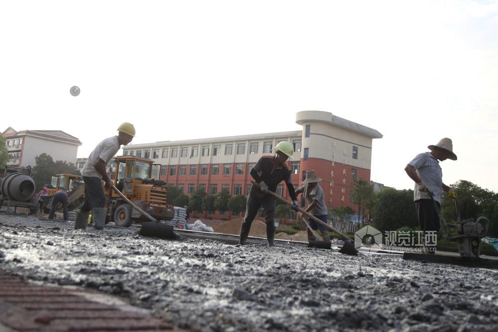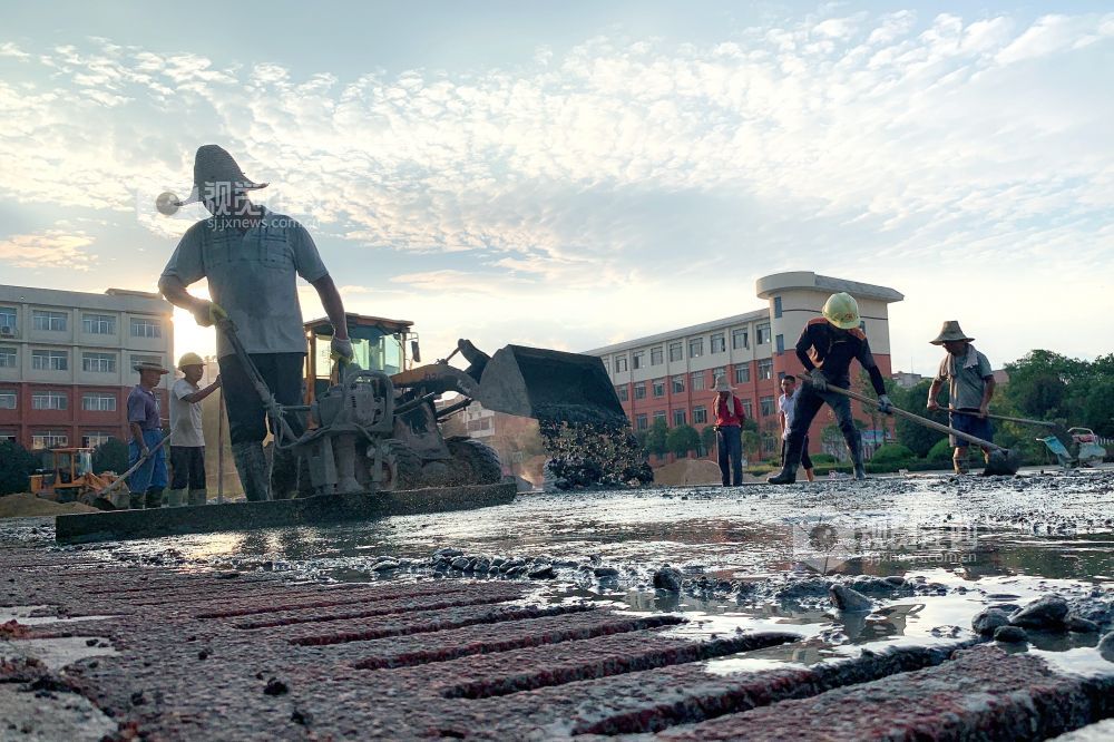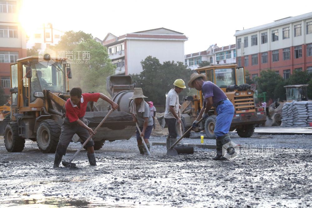 8月8日,江西省峡江县实验小学足球场新建、运动场改造项目施工现场,工人正在抓紧施工。为提升学生体能素质,该县在各中小学开设“大课间操”、足球兴趣课等,鼓励学生参加体育锻炼,同时创新体育课教学方式方法,加大体育场所建设投入,学生体能素质逐年提升。