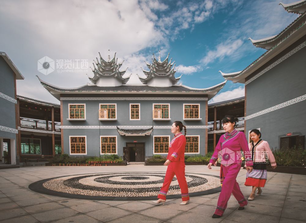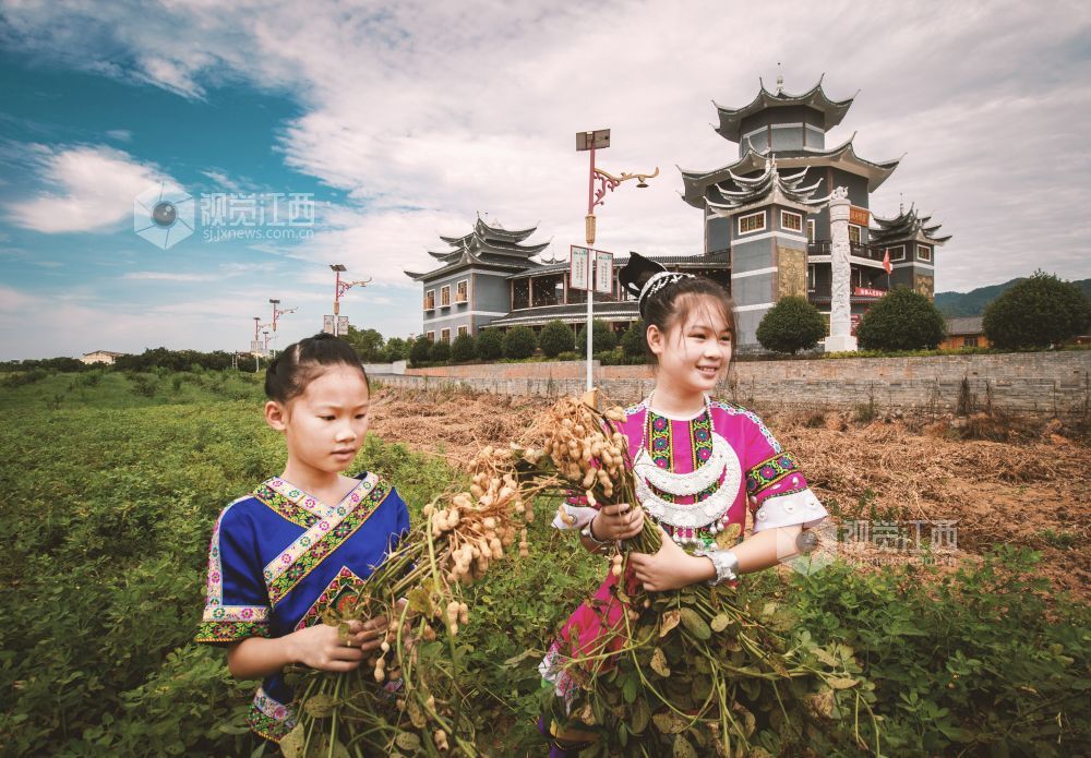 8月9日,江西省吉安市峡江县金坪民族乡。这里有独具民族特色的建筑、美丽的果园风光、质朴的农家小院,吸引游客纷至沓来体验民族风情。金坪民族乡前身是国营垦殖场,村民们多以种植果树为生,由于果品老化,市场竞争力不强,收入并不高。