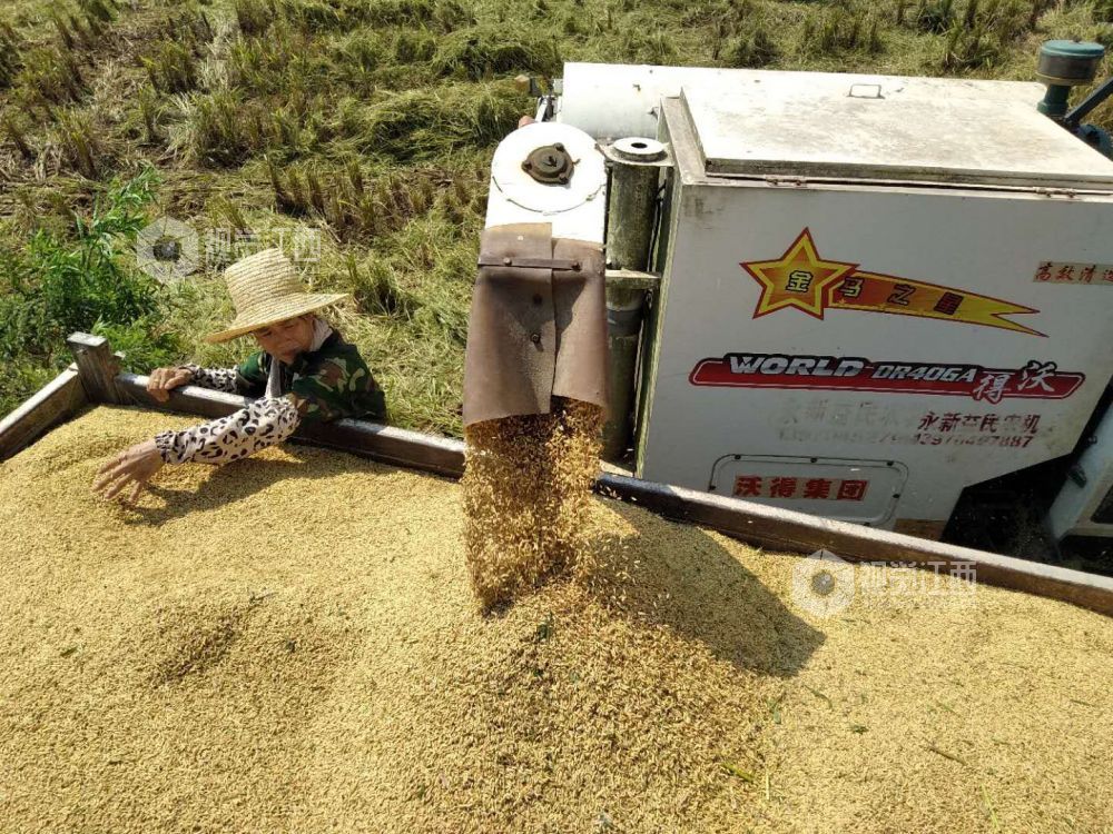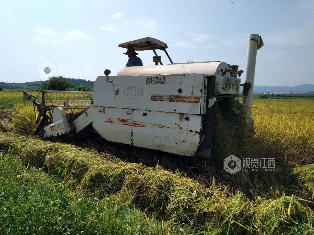 初秋时节,各地的中稻陆续成熟,进入收割期。8月18日,在江西省永新县莲州乡双湖村的稻田里,农民们在收割机的协助下忙着收割中稻,确保颗粒归仓,实现丰产丰收。