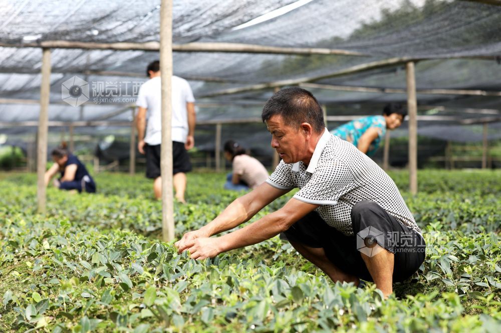 8月18日,江西省分宜县钤山镇长埠村油茶苗种植户李江南在油茶苗培育基地忙着给幼苗除萌、拔草。近年来,分宜县牢牢把握绿水青山就是金山银山的发展理念,发挥中国林科院亚热带林业实验中心长林系列良种油茶品牌优势,发展高产油茶育苗扶贫产业1000余亩和林下经济1万余亩,直接带动全县100余户贫困户增收致富。