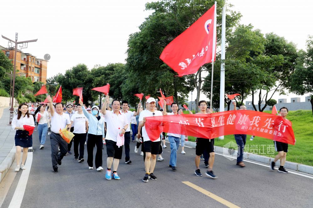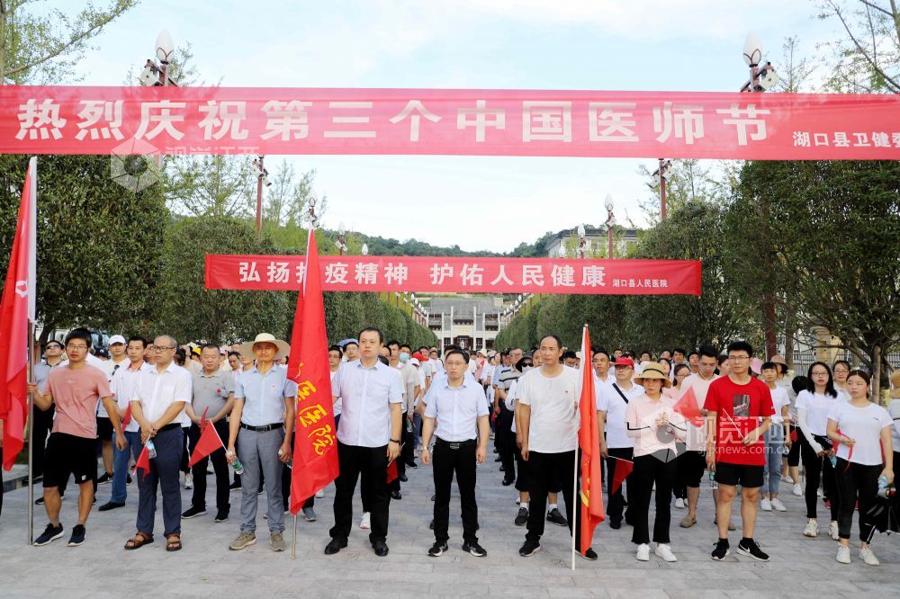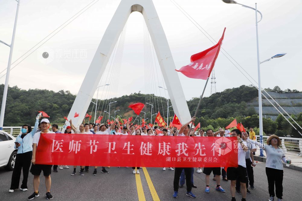 2020年8月19日,江西省九江市湖口县卫健系统开展以“弘扬抗疫精神 护佑人民健康“为主题的庆祝第三个中国医师节健步行活动。来自全县卫健系统的医疗卫生单位、各乡镇卫生院、私立医疗机构医务人员代表及县卫健委全体干部职工共计300余人,以单位为组别,个个精神饱满,迈着稳健步伐前行。一路上,他们手中挥舞着国旗,脸上洋溢着快乐的笑容。活动结束后,大家纷纷表示,健步行活动愉悦心情,锻炼身体的同时释放了工作压力,增强了集体凝聚力和向心力。今后要养成自觉健身、主动锻炼的良好习惯,当好人民健康的守护者。