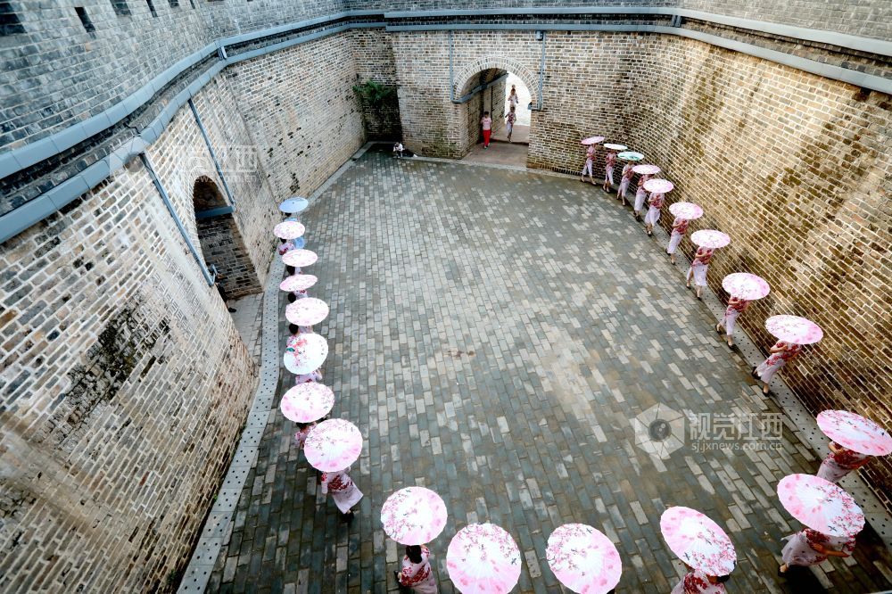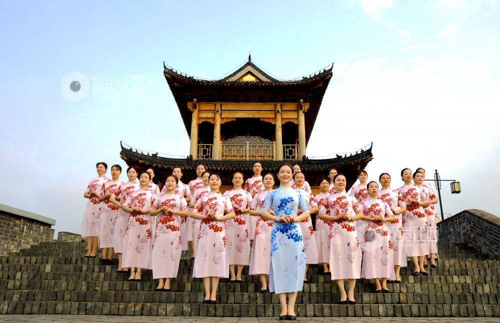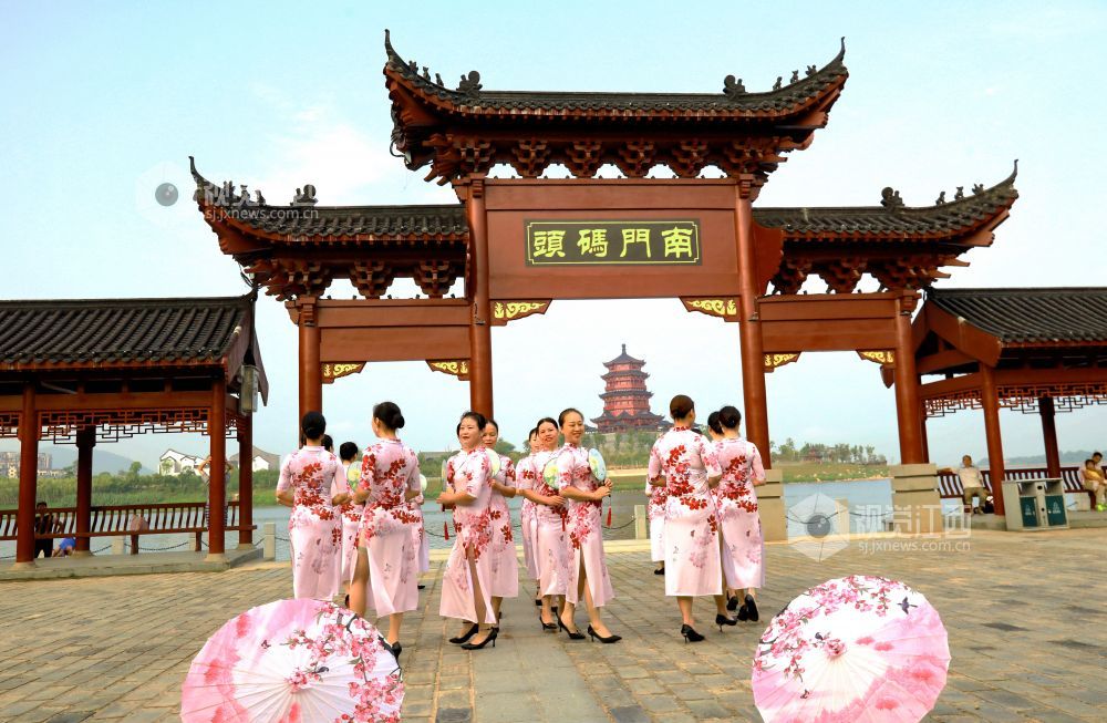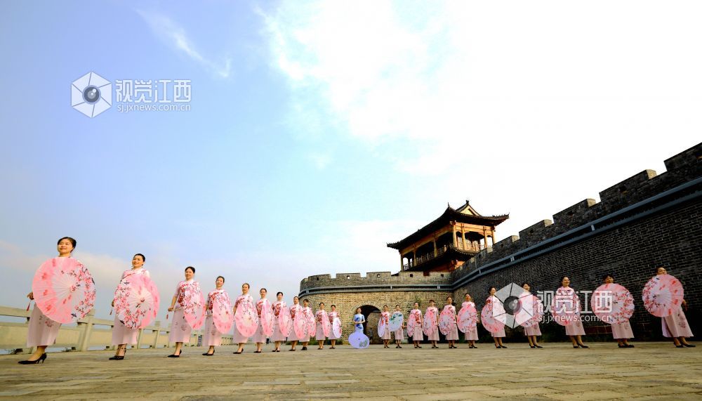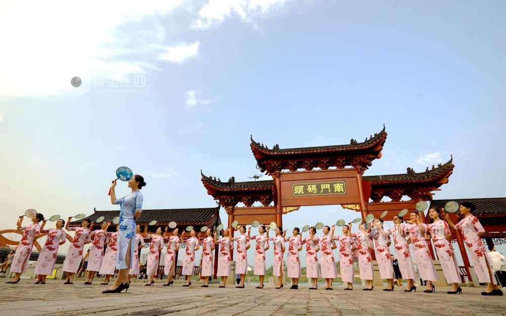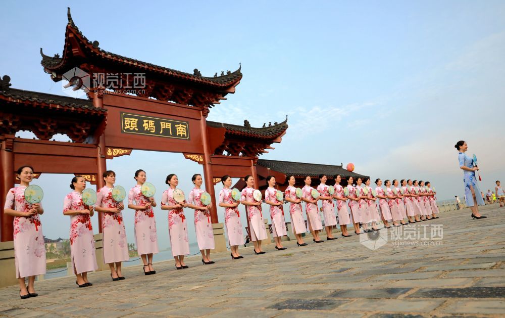 2020年8月22日,江西省吉安市吉水县古城墙下,一群旗袍爱好者在这里展示旗袍的神奇魅力,古城墙的雄浑和传统旗袍的柔美在这里惊艳相遇。江西省吉安市吉水县修复一段明清古城墙作为景观保留,成为市民休闲观光的好去处。柔美旗袍在这里和古城墙的惊艳相遇,引来众多市民观看拍照。