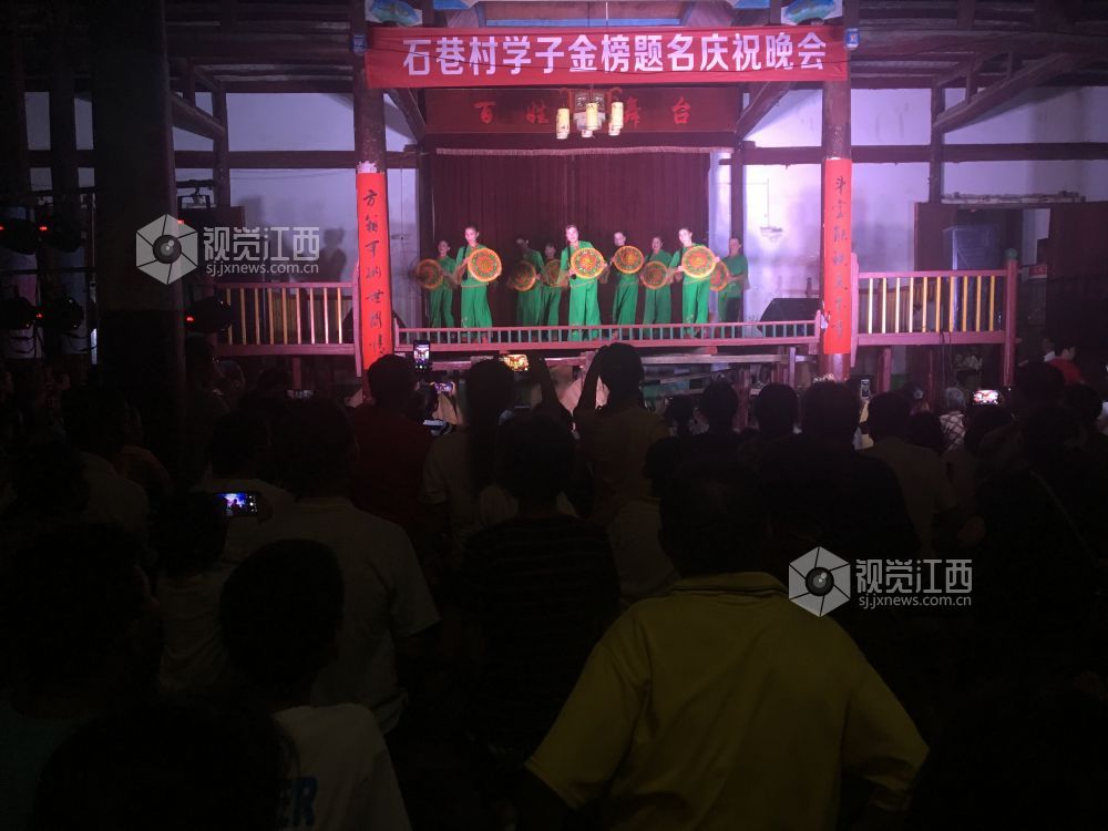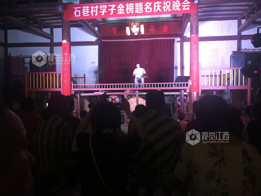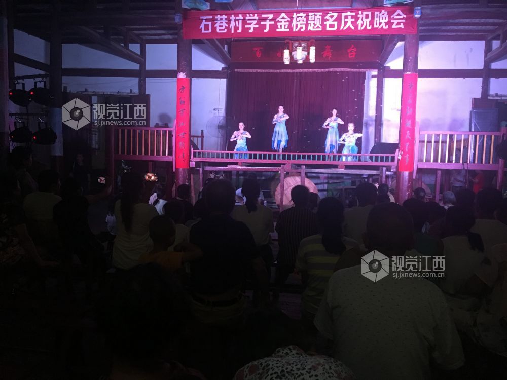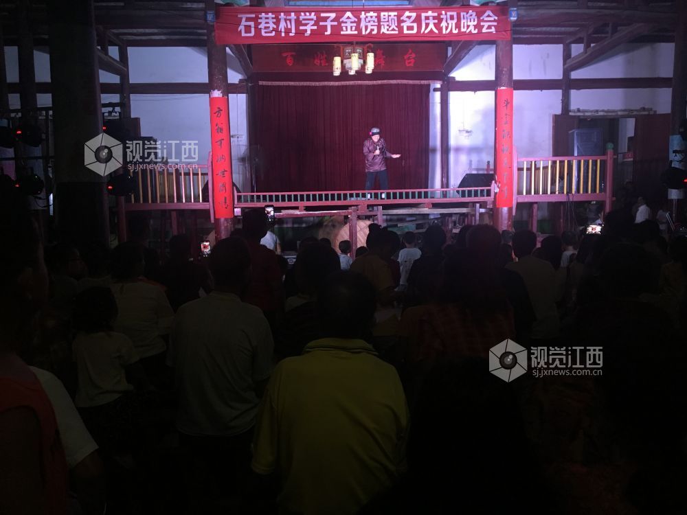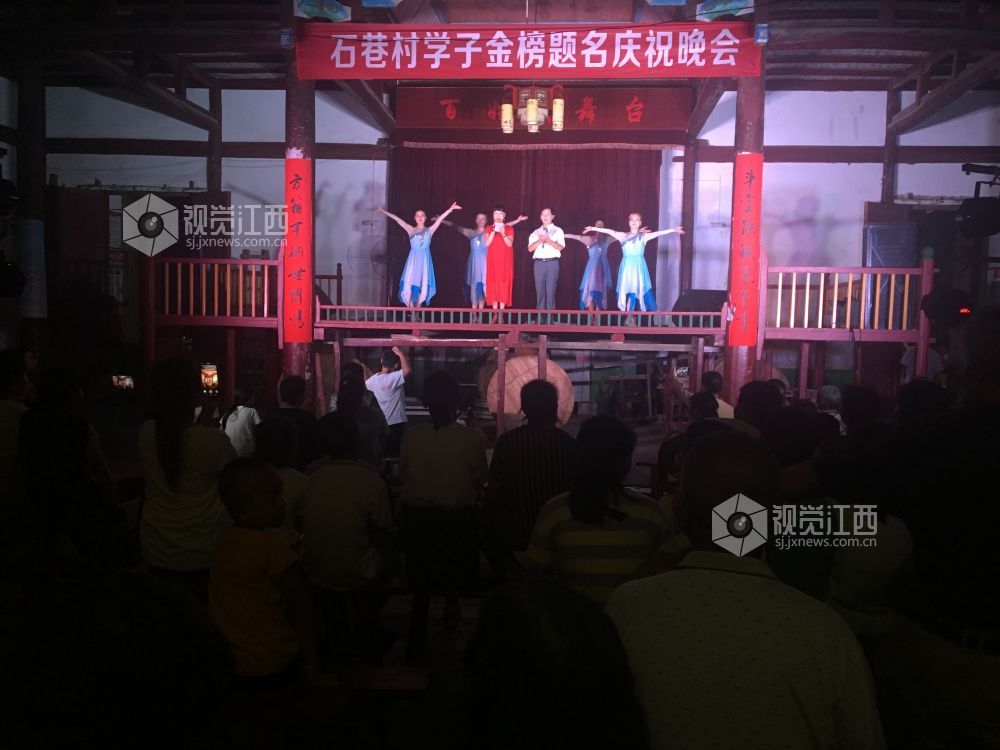 为进一步弘扬尊重知识、尊重人才的良好社会氛围,激励更多的青少年刻苦学习,立志成才。2020年8月24日晚,江西省永新县在中乡石巷村委会特邀请永新县采茶剧团赴村里为13名金榜题名的学子举行了一场隆重的庆祝晚会。