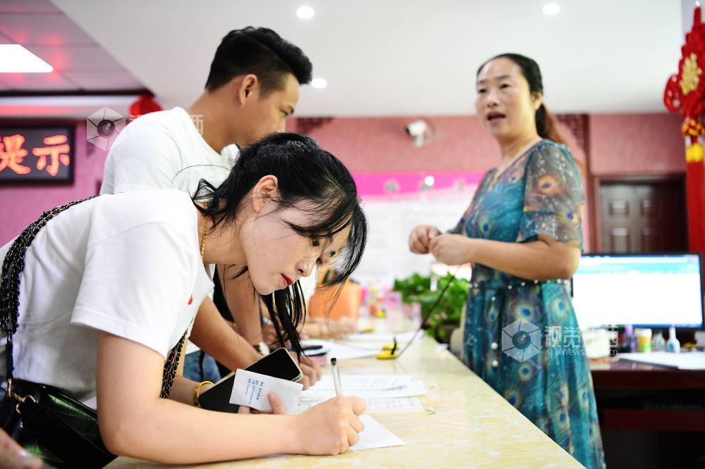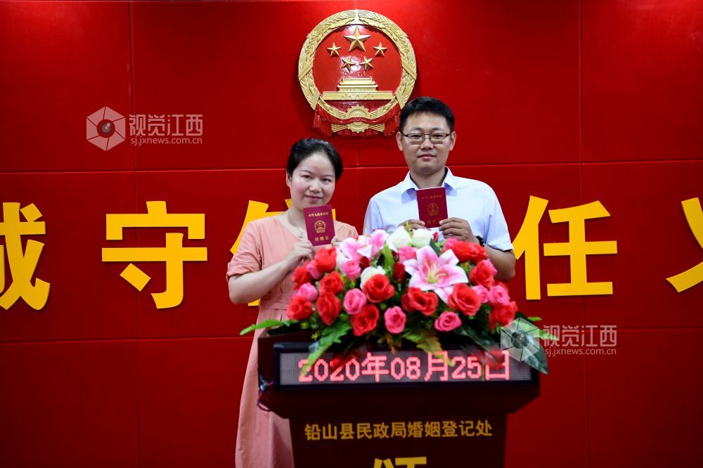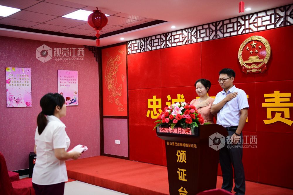 2020年8月25日,是农历7月7日,在江西省上饶市铅山县民政局婚姻登记处,前来登记结婚的新人“扎堆”。七夕节也被称为中国的“情人节”,寓意着美好的爱情,大部分人特意选择“情人节“而来,希望在这个温馨浪漫的节日登记结好婚,让自己的婚姻从第一天起就充满天甜蜜浪漫。