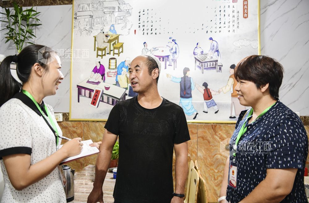 2020年8月26日,在江西省上饶市铅山县河口镇一兰州拉面馆,该镇人大代表正在走访店老板,了解他在生意上或生活上有什么困难和需求。为进一步做好少数民族流动人口服务工作,让少数民族流动人员在铅山能安心工作、舒心生活,铅山充分发挥人大代表与人民群众的联系作用,主动关心他们的工作和生活,帮助他们解决实际困难,促进民族团结。