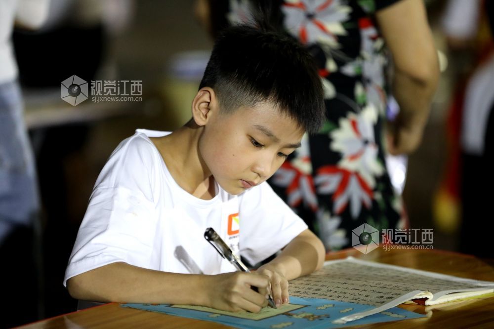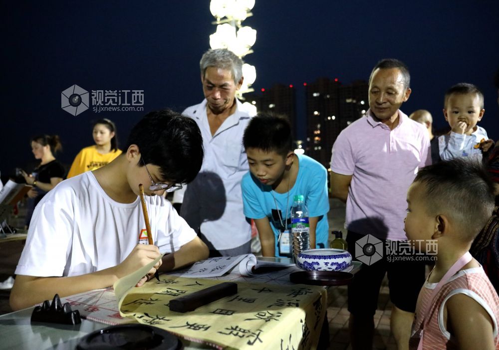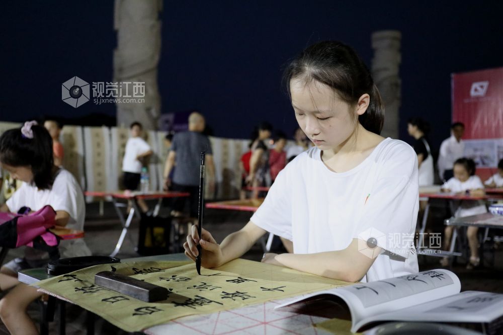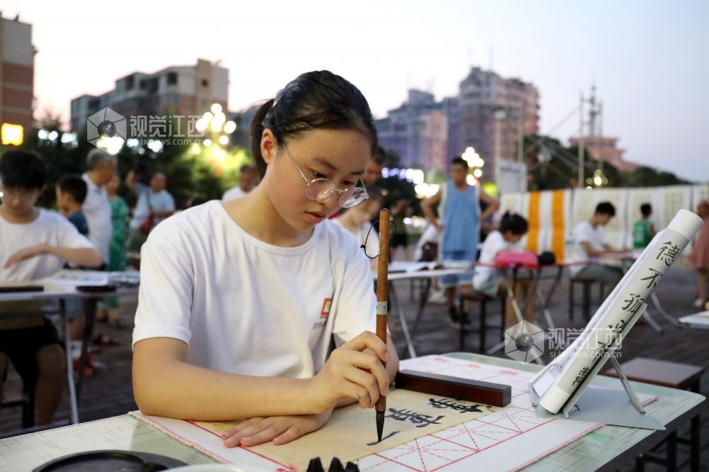 8月28日,青少年书法爱好者在江西省分宜县市民广场认真练习书法。近年来,传承发扬书法文化,正逐步成为社会共识。分宜县高度重视中华优秀传统文化的传承与发扬,通过开好日常写字课、办好学生书法社团、开展书法进校园等多种活动,既激发学生们书法兴趣、提高书写水平,又让他们感受优秀传统文化书法艺术的魅力。