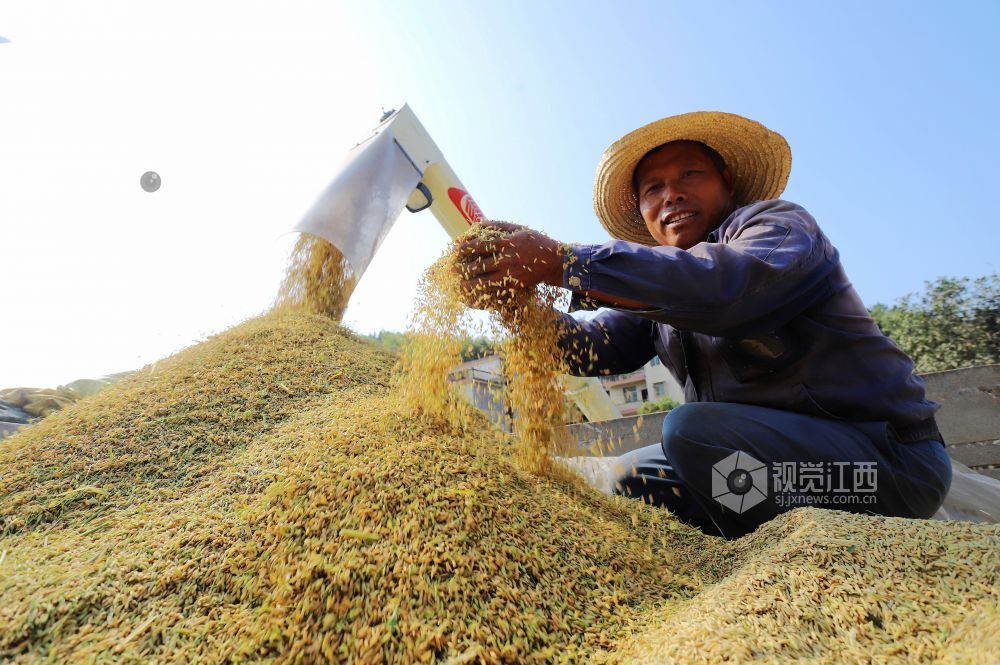 9月1日,江西省安福县赤谷乡苍坑村村民刘克勤在装运刚收割的稻谷。刘克勤今年种植中稻30亩,亩产达1400余斤,全部直接销往烘干厂。今年,安福县认真落实国家惠农政策,出台了有效应对疫情抓好粮食生产的12条措施,对粮食生产先进乡镇、种粮大户进行奖补。目前,该县中稻陆续进入成熟季,农民们忙于收割稻子,出售稻谷。
