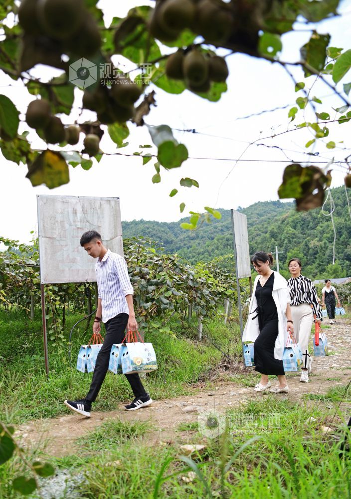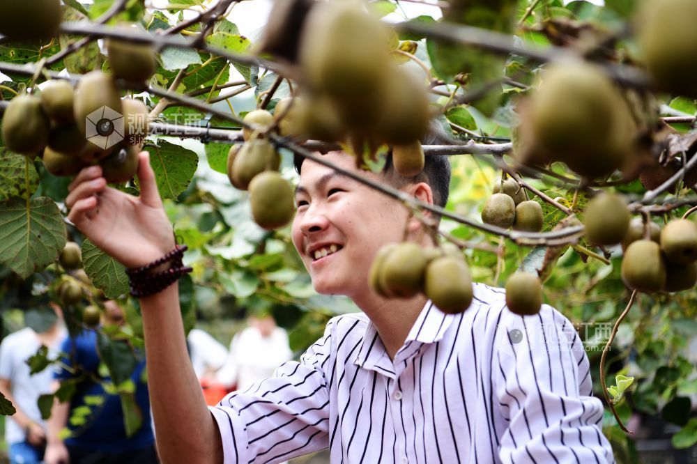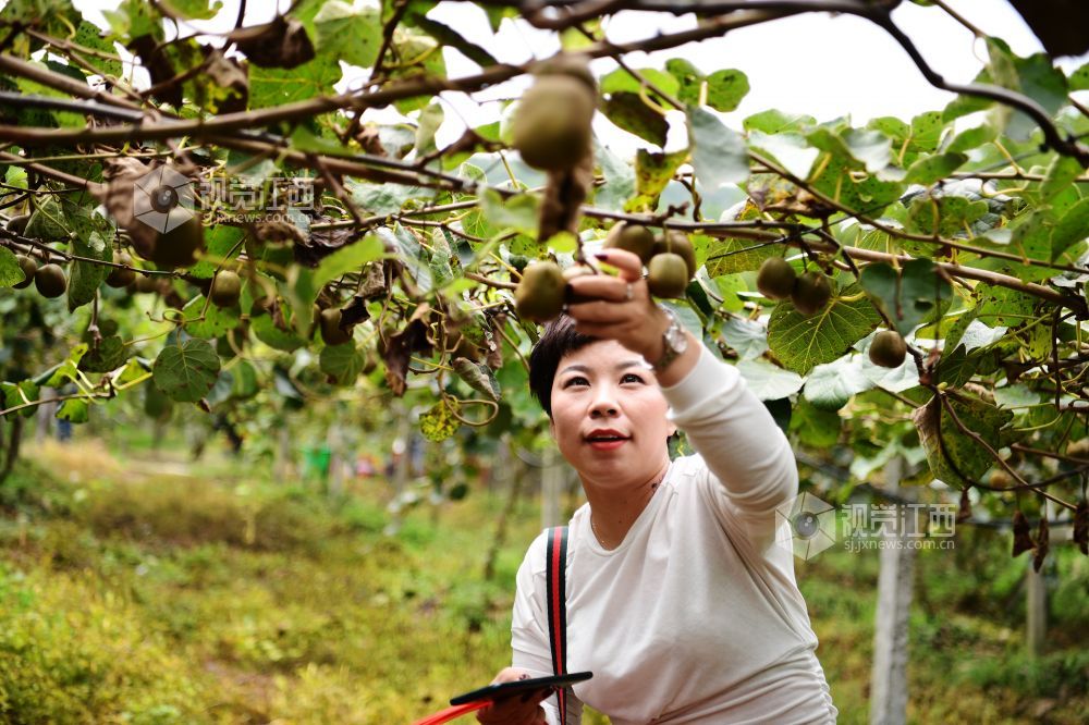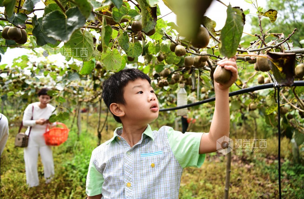 2020年9月5日,在江西省上饶市铅山县陈坊乡沽溪村猕猴桃产业基地,游客正在采摘猕猴桃。近年来,铅山在推进脱贫攻坚工作中,积极引导贫困群众发展特色果业种植,助力农民脱贫增收。