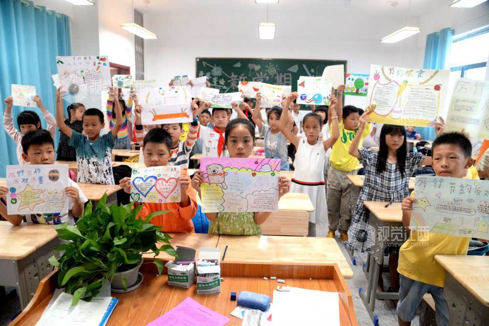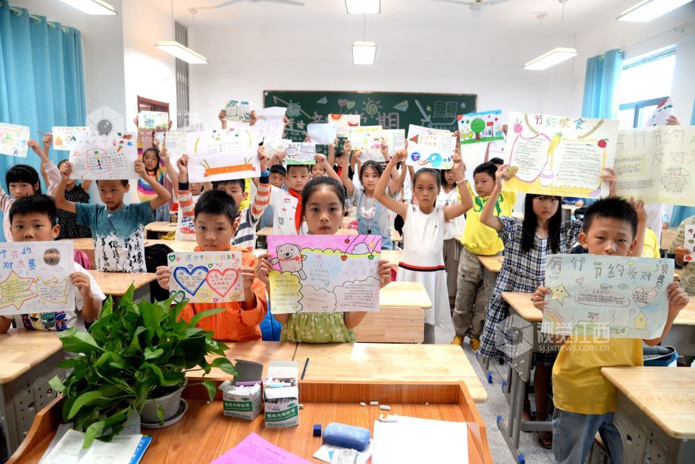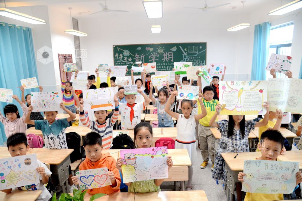 2020年9月8日,江西省抚州市南丰县嘉禾小学的学生在绘制并展示自己动手制作的“厉行节约,反对浪费”手抄报。当日,江西省抚州市南丰县嘉禾小学以主题班会的形式,在各年级开展“厉行节约,反对浪费”主题教育活动,争做“光盘行动”小卫士,让学生从小养成节俭的良好习惯。