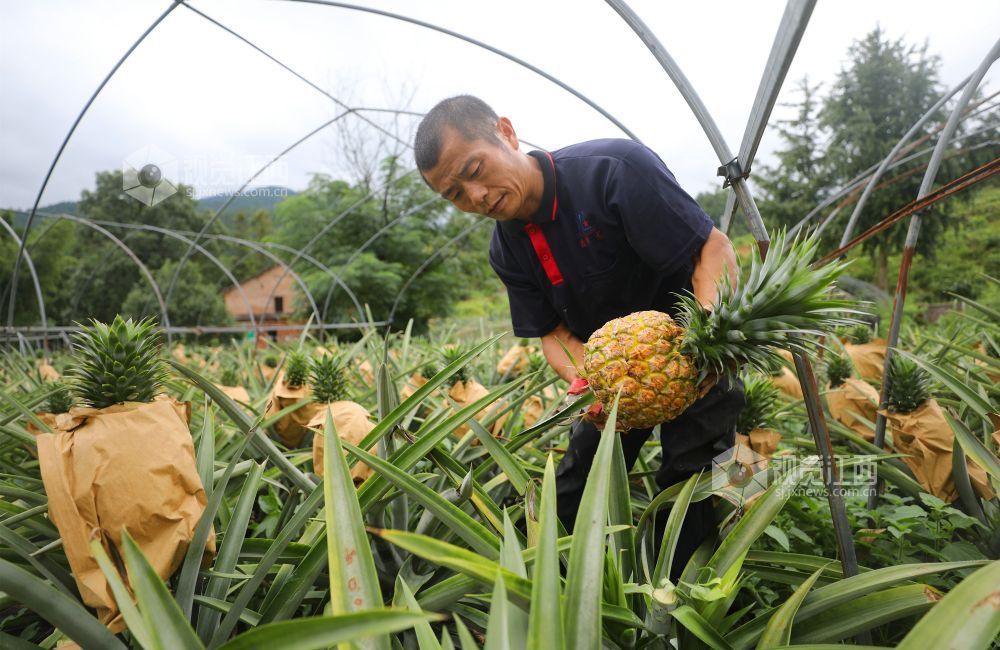 2016年,该合作社引进台湾凤梨品种,并聘请台湾技术人员前来指导,经过反复改良培育,终于试种成功。因为地理位置、气候条件不同,产出的凤梨避开了春季上市高峰期,实现产品附加值提升,每斤可卖到20元,预计今年产量可达15000多斤,纯收入在20万元左右。
