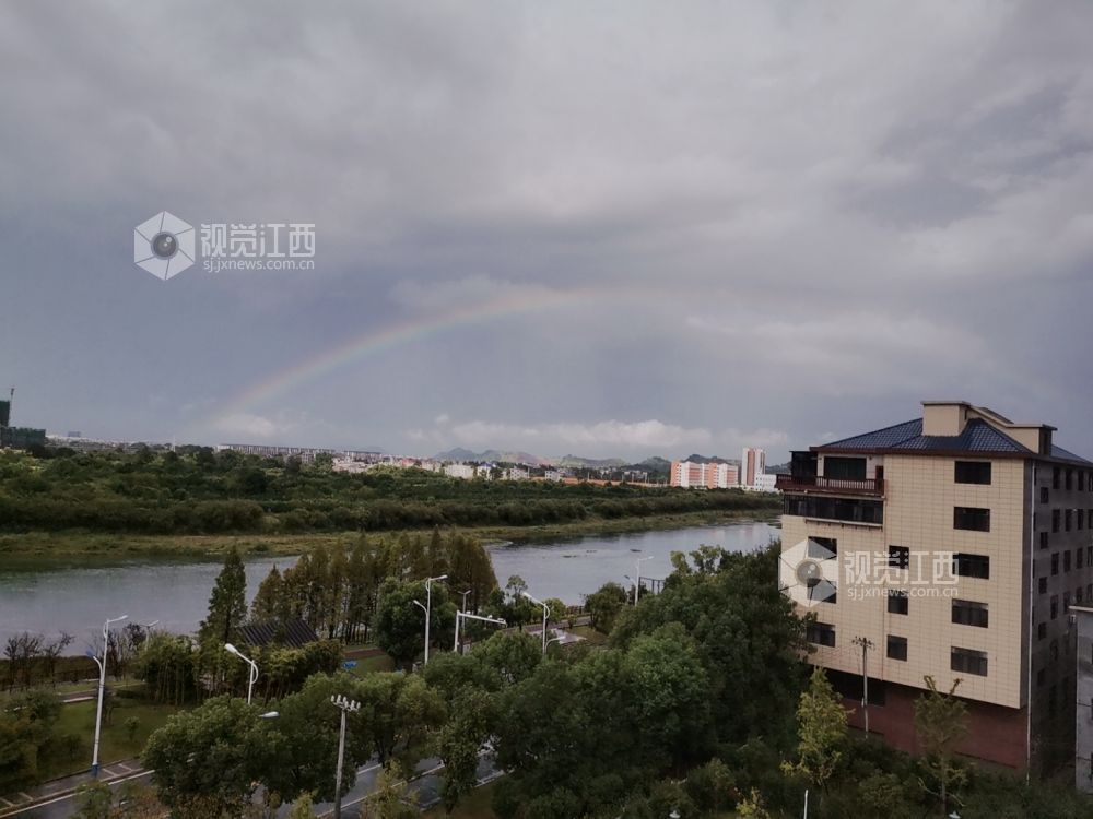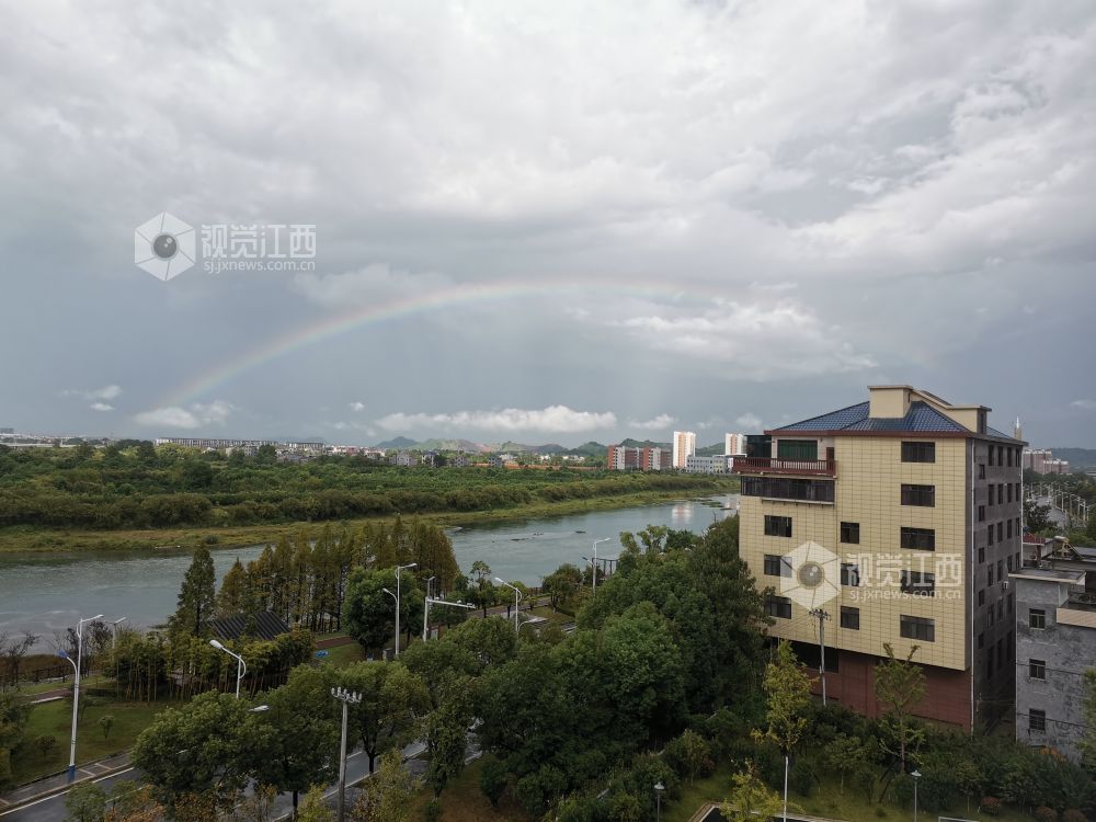9月16日下午,在一场暴雨过后,江西省永新县的天空中出现了美丽的彩虹!彩虹横跨天际,清晰可见,十分迷人。