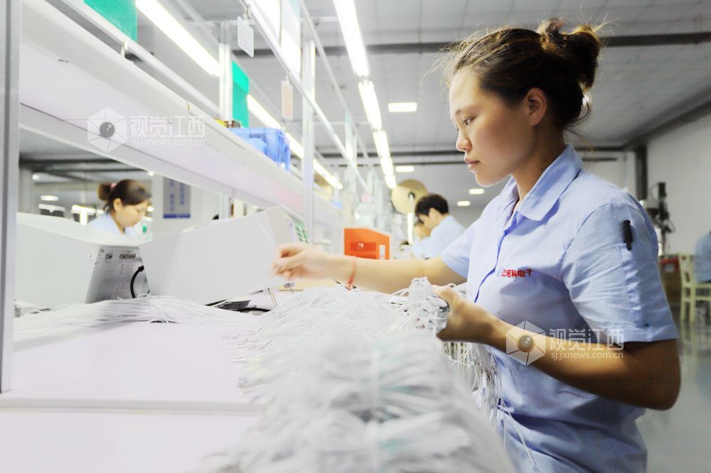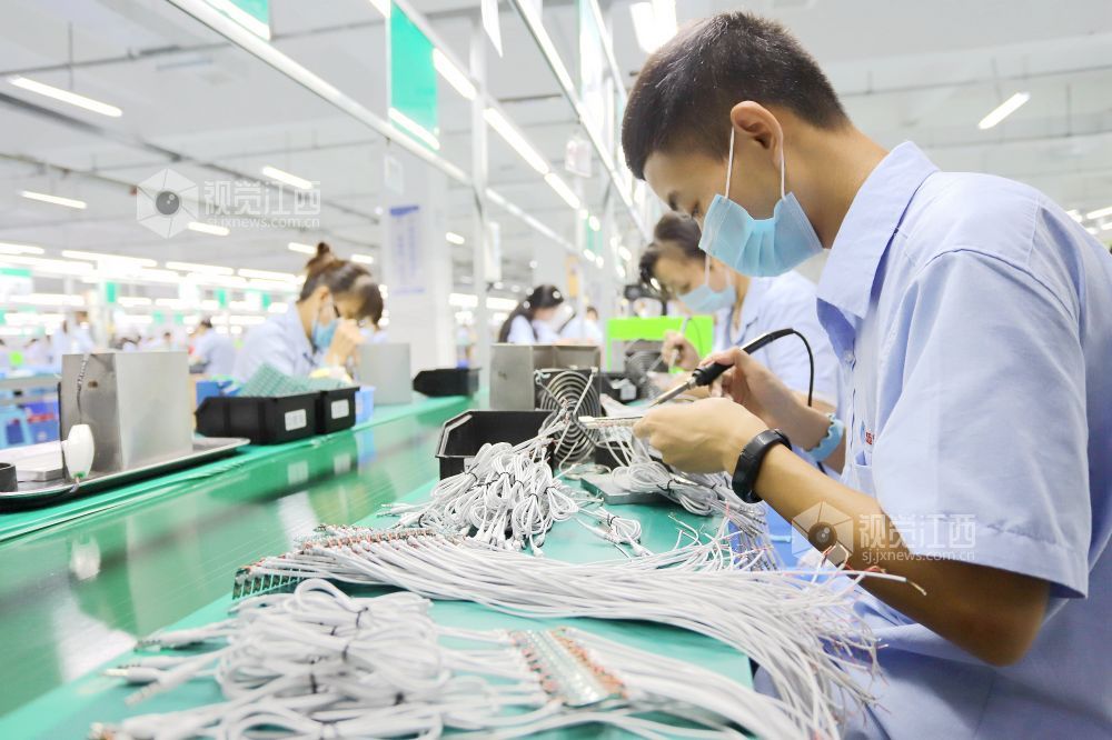 9月16日,江西省安福县高新区一家电子厂员工在生产线上工作。今年以来,安福县人才服务与就业局、县高新区管委会等部门不断创新服务方式,拓展服务内容,采取委托招工、联合招工、奖补招工等方式强化稳工招工力度。今年以来,该县为重点企业新招员工3080人,缓解了受疫情影响带来的稳工招工压力。