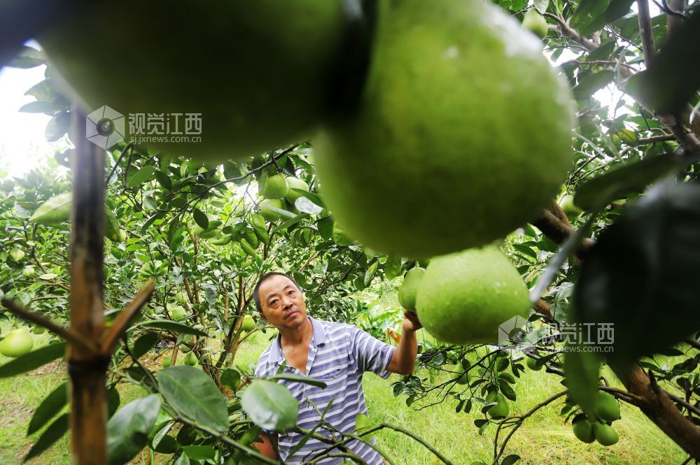 9月17日,江西省安福县严田镇南村村民彭松秋在管护蜜柚。彭松秋于2012年种植蜜柚30亩,2015年进入盛果期后,年收入10余万元。近年来,该县把蜜柚种植列为脱贫攻坚八大产业之首,通过抓示范,建基地,强龙头,培植了一批具有示范带动能力的蜜柚种植大户、蜜柚专业村和蜜柚新经济组织,全县蜜柚种植实现高质量发展。