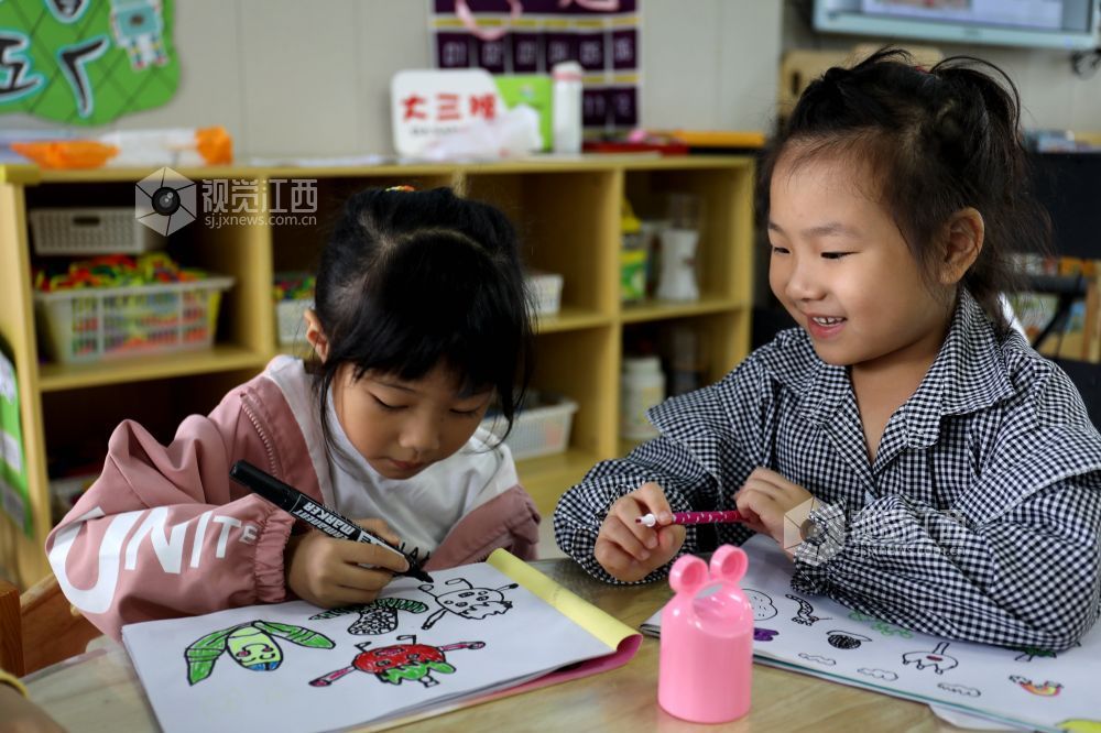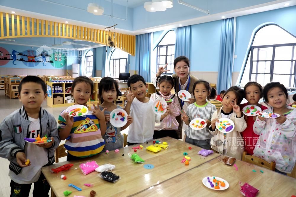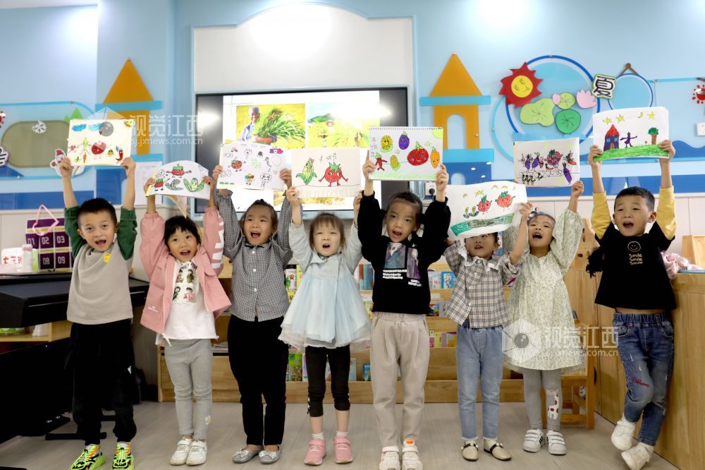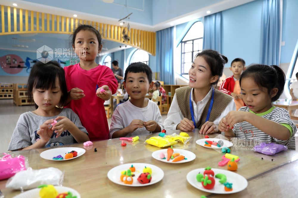 9月18日,江西省分宜县钤景幼儿园大班的小朋友忙着画出和捏出自己喜欢的蔬菜与水果,欢庆我国第三个农民丰收节的到来。