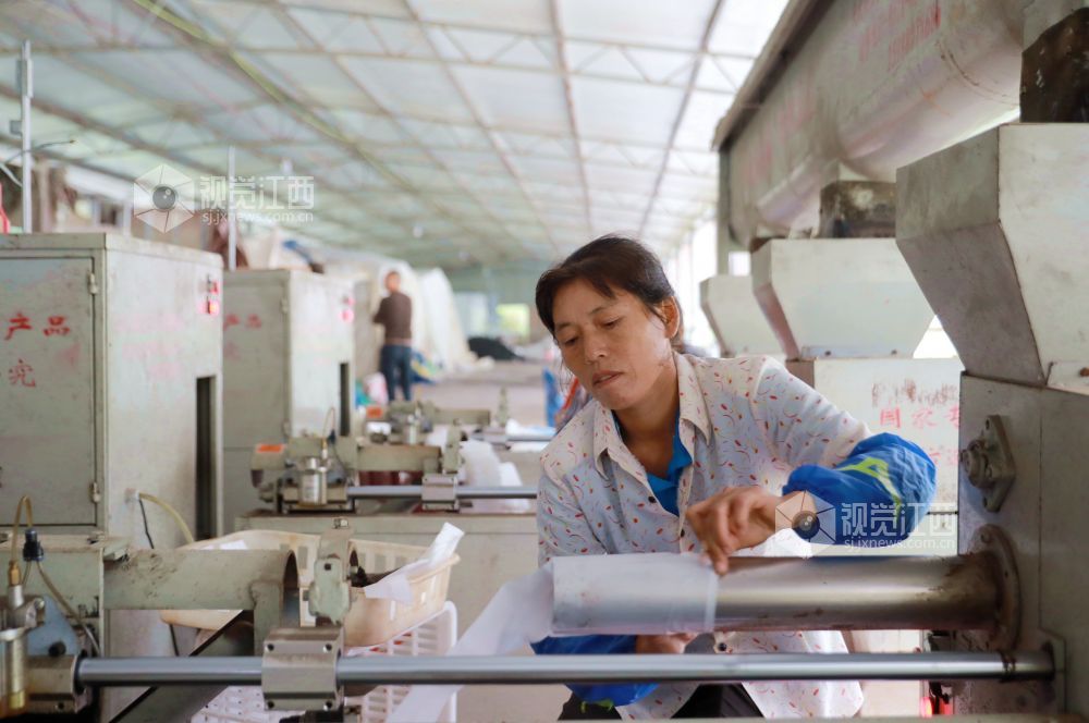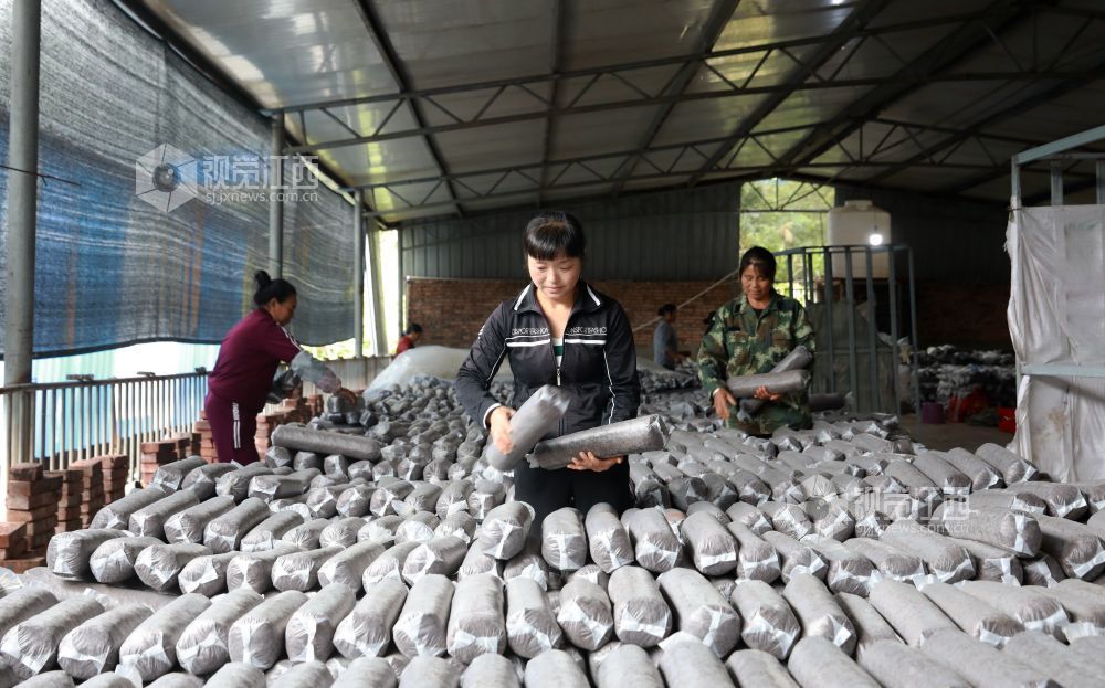 2020年9月19日,江西省吉安市吉水县双村镇富祥食用菌种植基地扶贫车间,当地村民正在制作食用菌菌棒。食用菌种植基地采用“公司+合作社+基地+农户”的经营模式,吸收贫困户入股,为贫困户提供菌棒,待菌菇成熟后,再以保底价统一收购,既解决了贫困户资金投入又解决了销售难题,公司也增加了产值。目前,公司与6个非贫困村198户贫困户建立了利益联结机制并实现分红,助力村民脱贫富路。