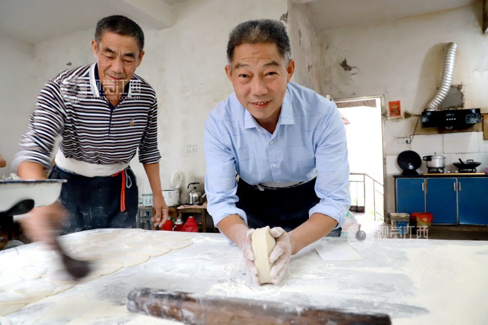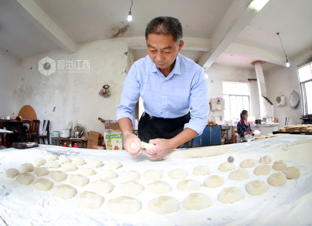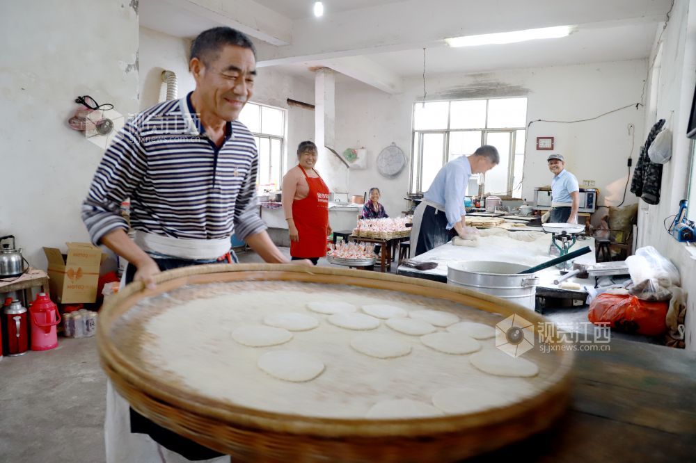 2020年9月23日,位于江西省九江市湖口县大垅乡的传统手工糕点坊内,做了55年传统糕点的骆细蒙及工友们正在制作手工发饼。中秋节将至,现做现卖、香甜可口、价格实惠的手工发饼,深受广大群众的青睐。