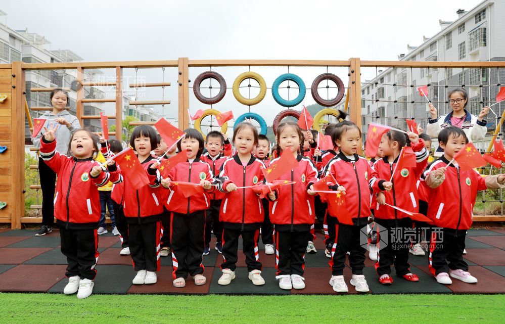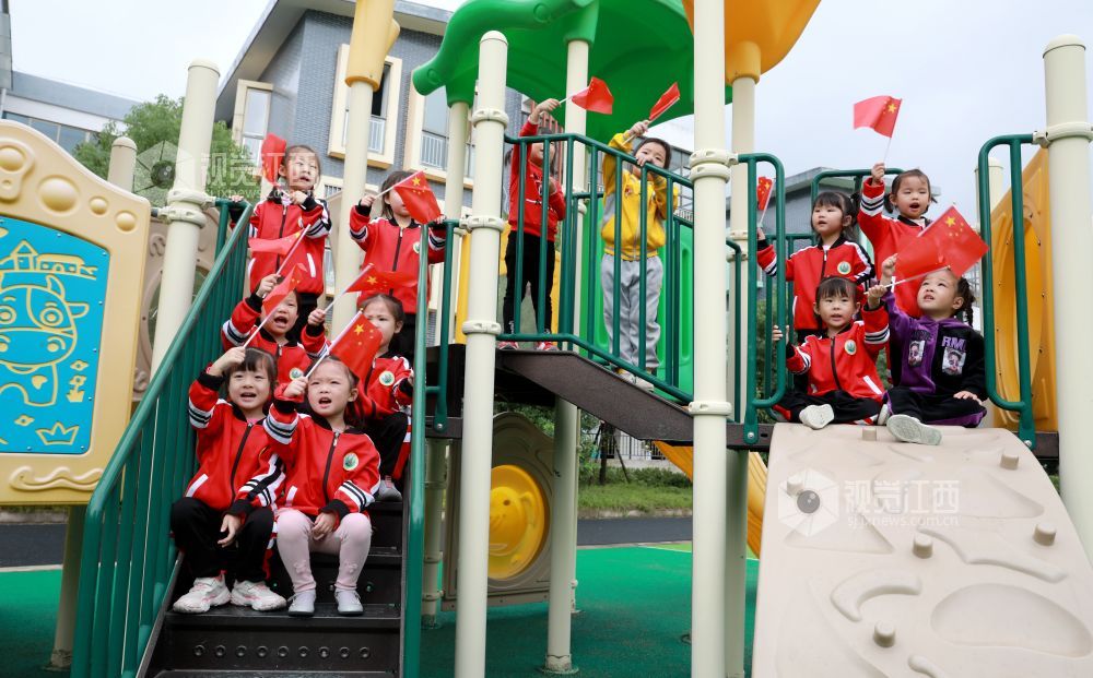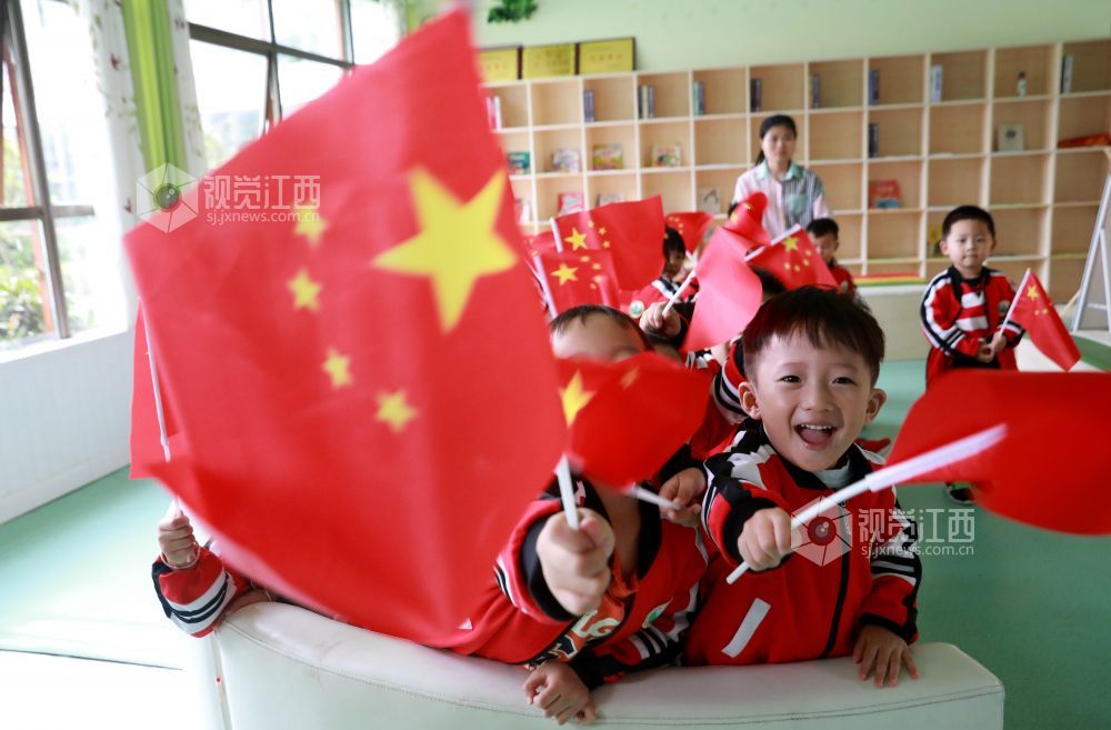 2020年9月28日,江西省吉安市吉水县第二中心幼儿园的小朋友手舞国旗,欢唱《祖国祖国我爱你》,喜迎国庆、中秋双节来临。感受传统文化,从小培养小朋友的爱国情结。