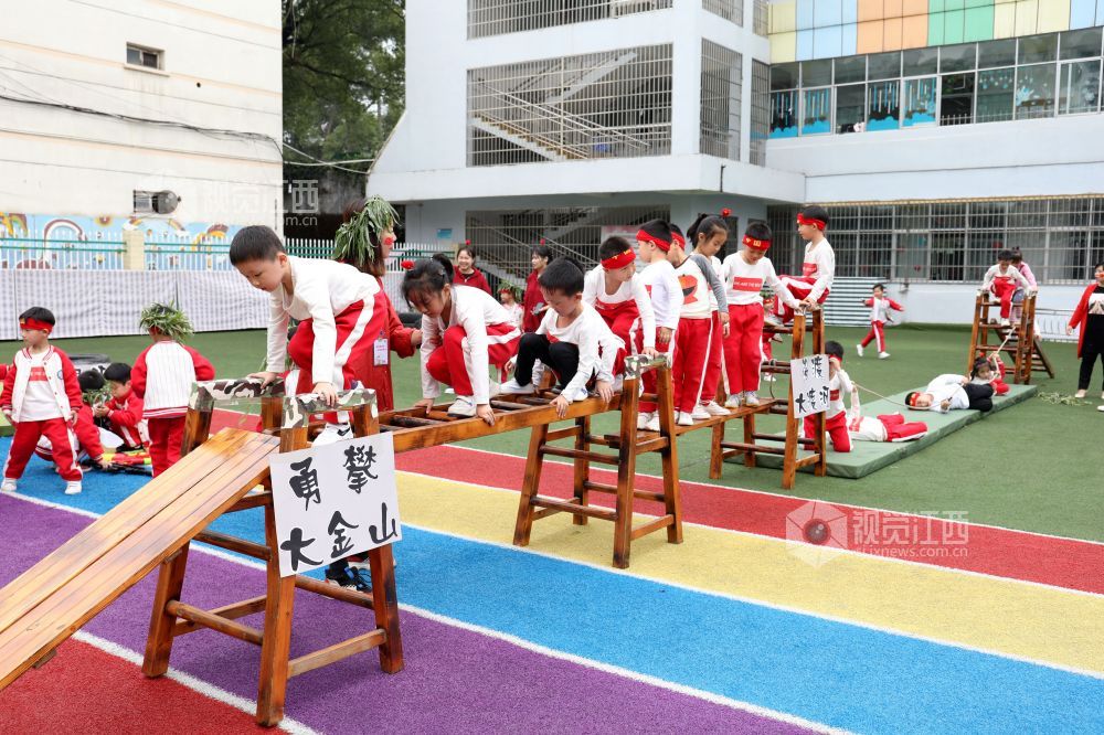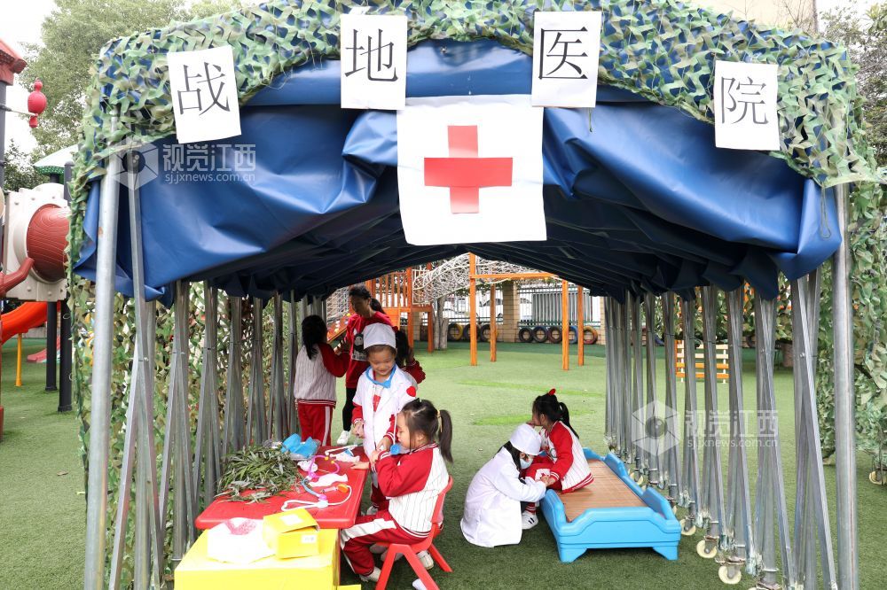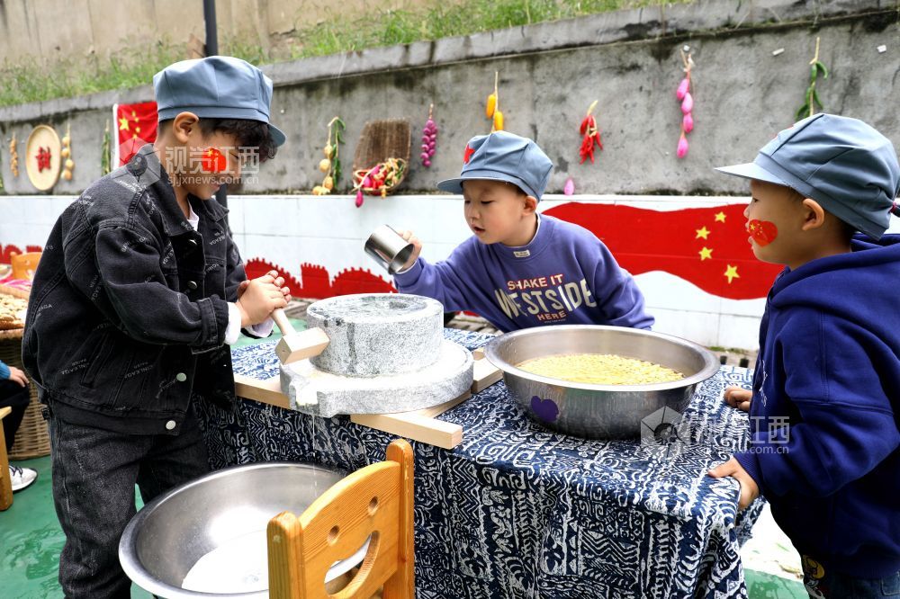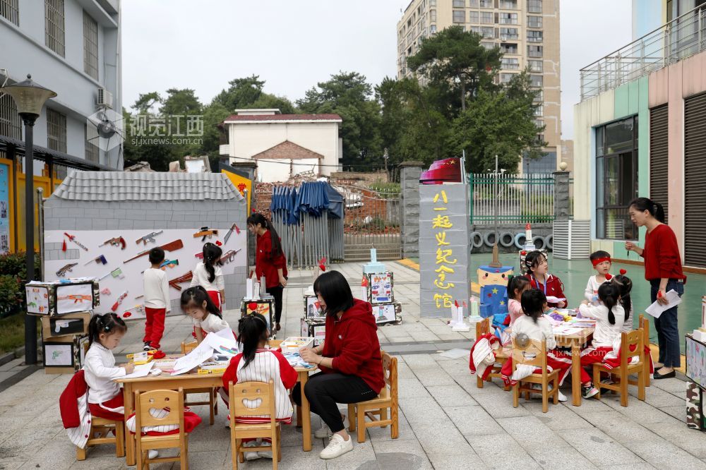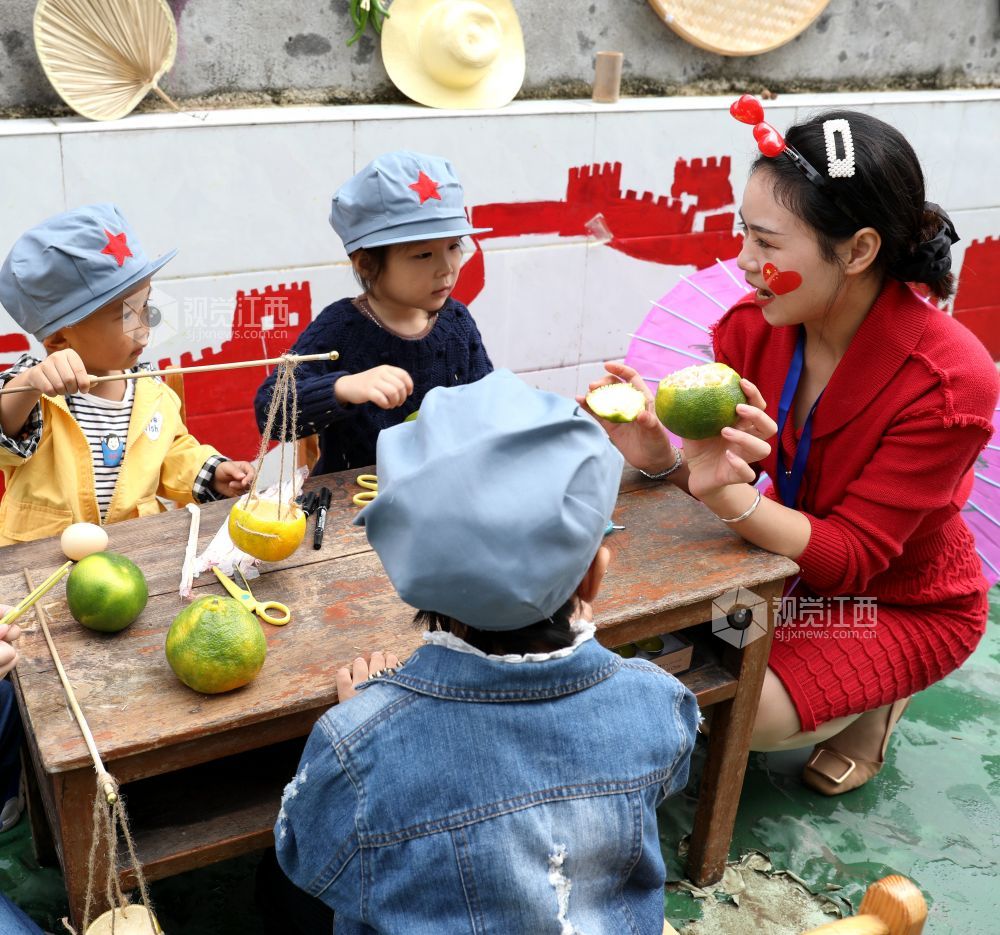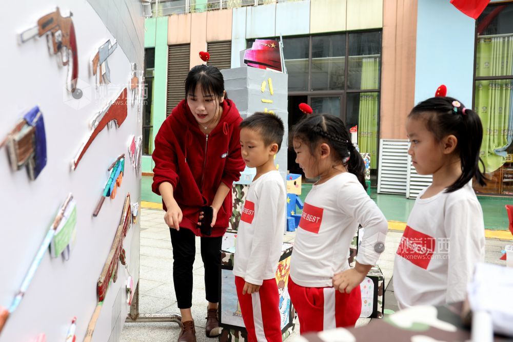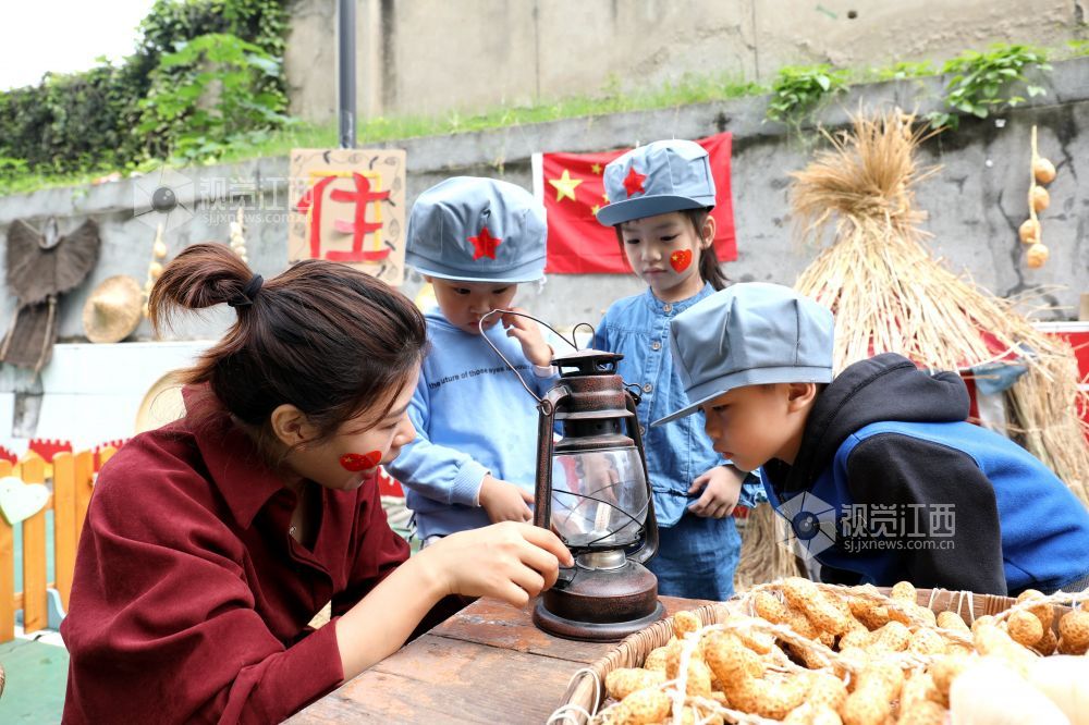 在新中国成立71周年之际,9月28日,江西省分宜县中心幼儿园举行“体验红军生活 传承红色精神”爱国主题教育活动。活动当天,校园内布置了“重走长征路”“忆苦思甜”“红色之窗”等环境场景,让孩子们在游戏化的情景中,追寻红色记忆、感知红色物件、体验新中国生活的来之不易,培养孩子们爱祖国、爱家乡、爱人民的道德情操。