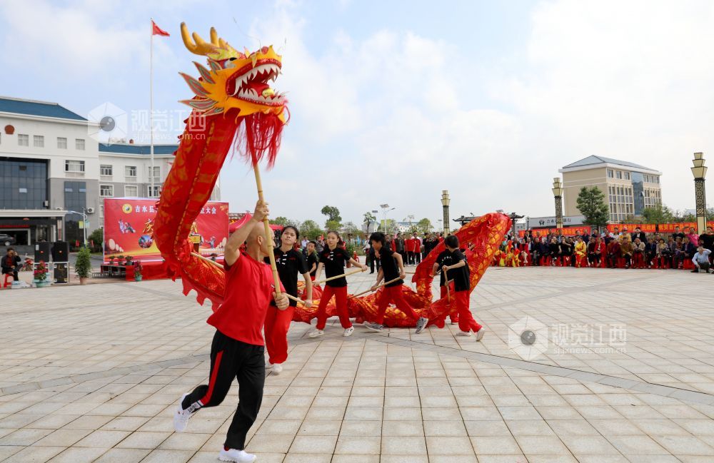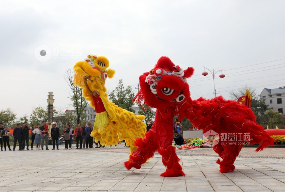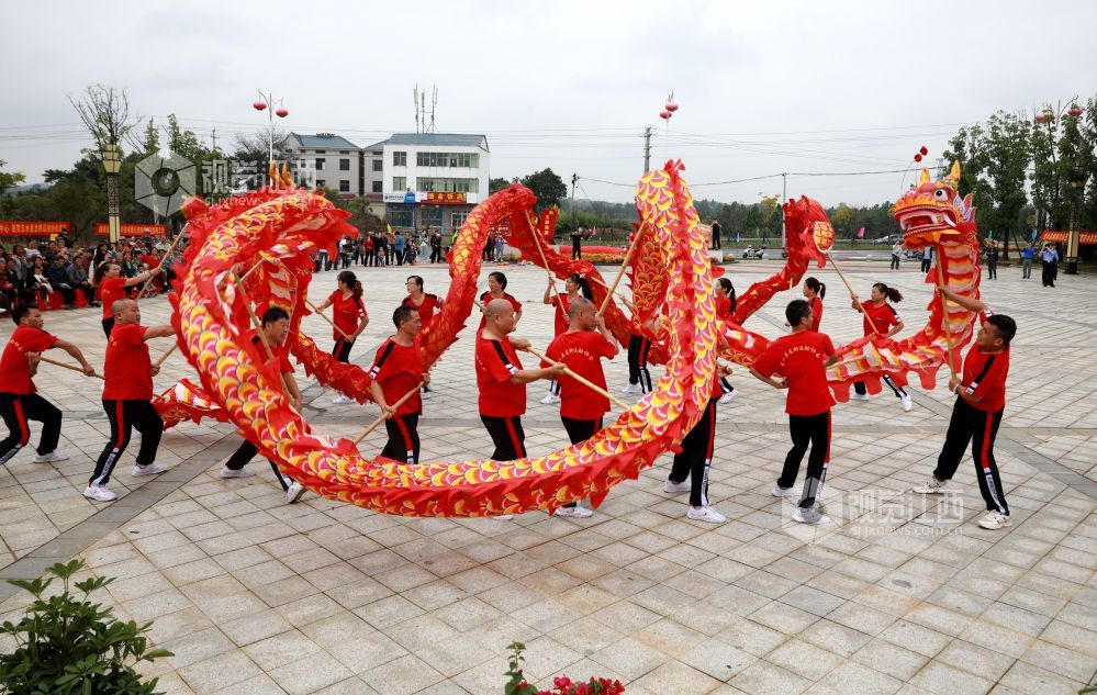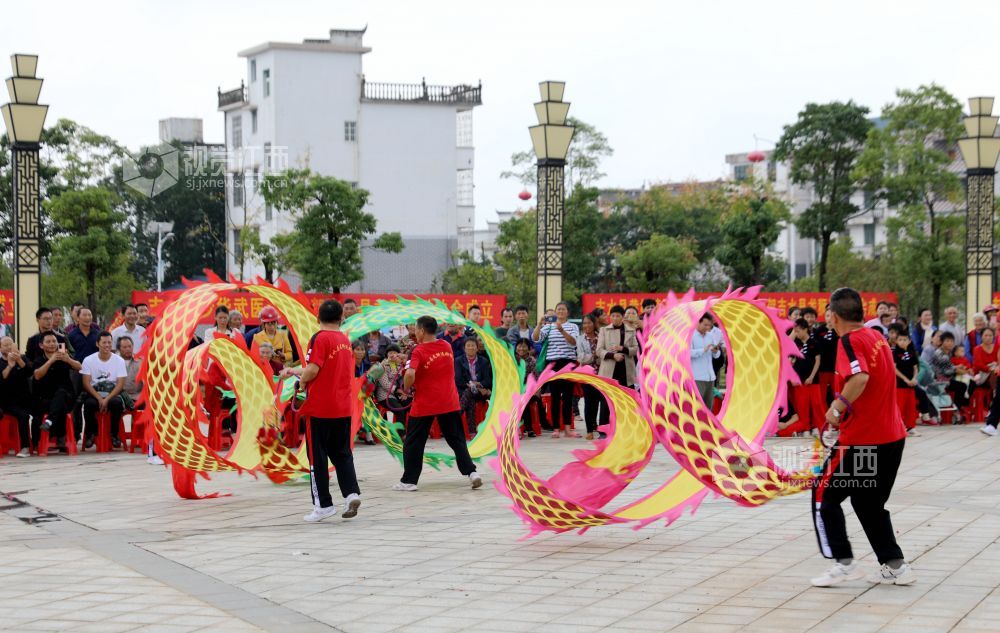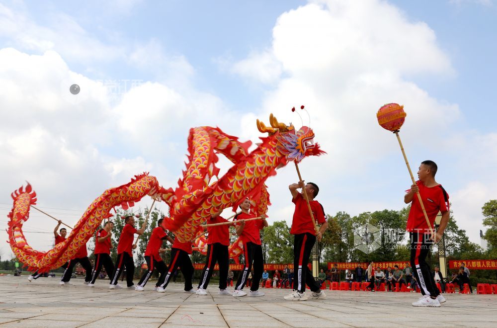 2020年9月30日,江西省吉安市吉水县黄桥镇万里广场,当地百姓欢舞龙狮,喜庆双节。