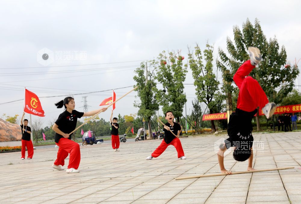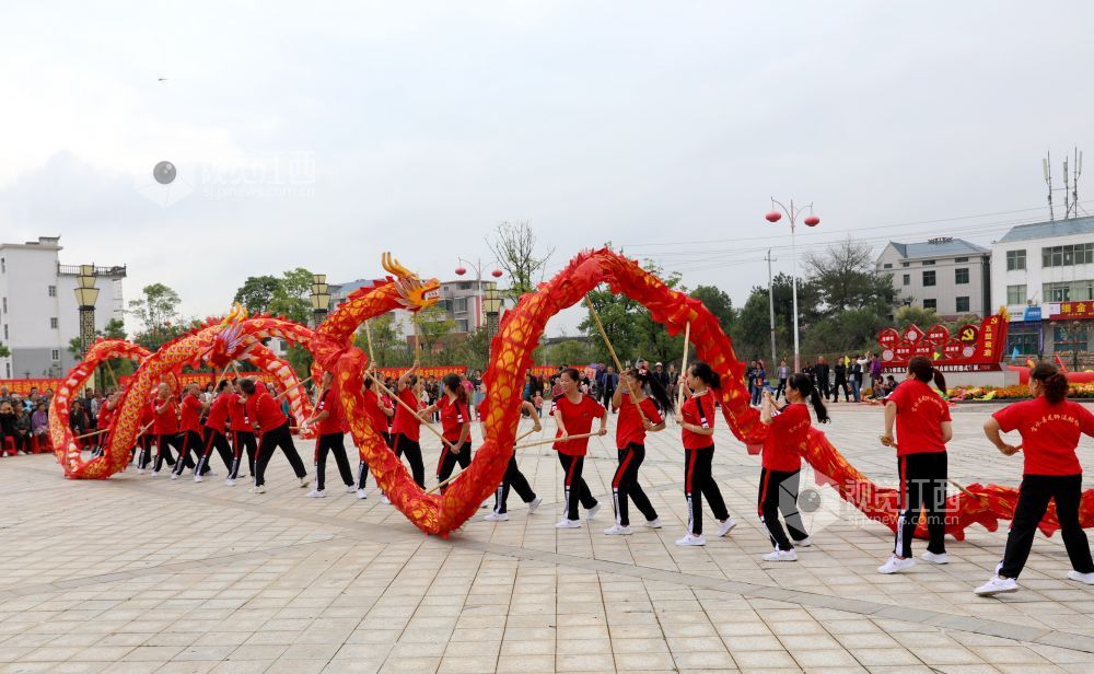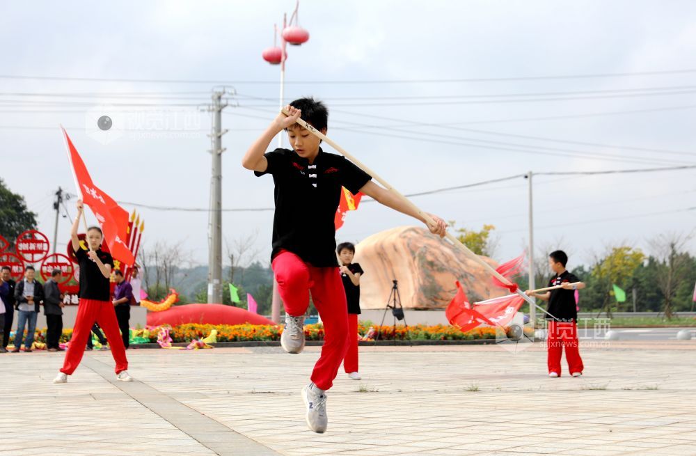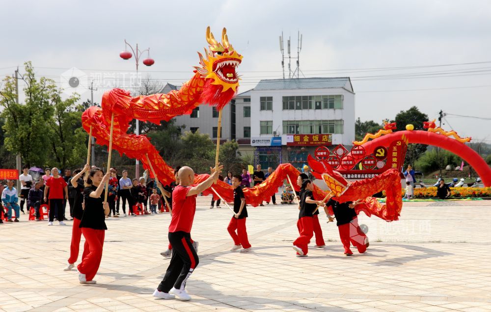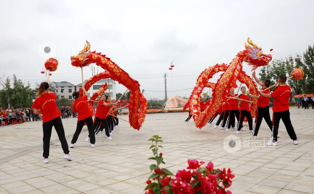 2020年9月30日,江西省吉安市吉水县黄桥镇万里广场,当地百姓欢舞龙狮,喜庆双节。