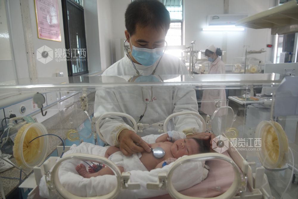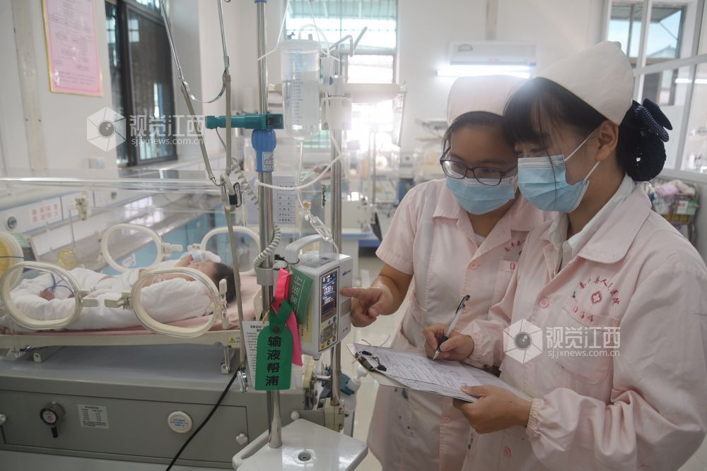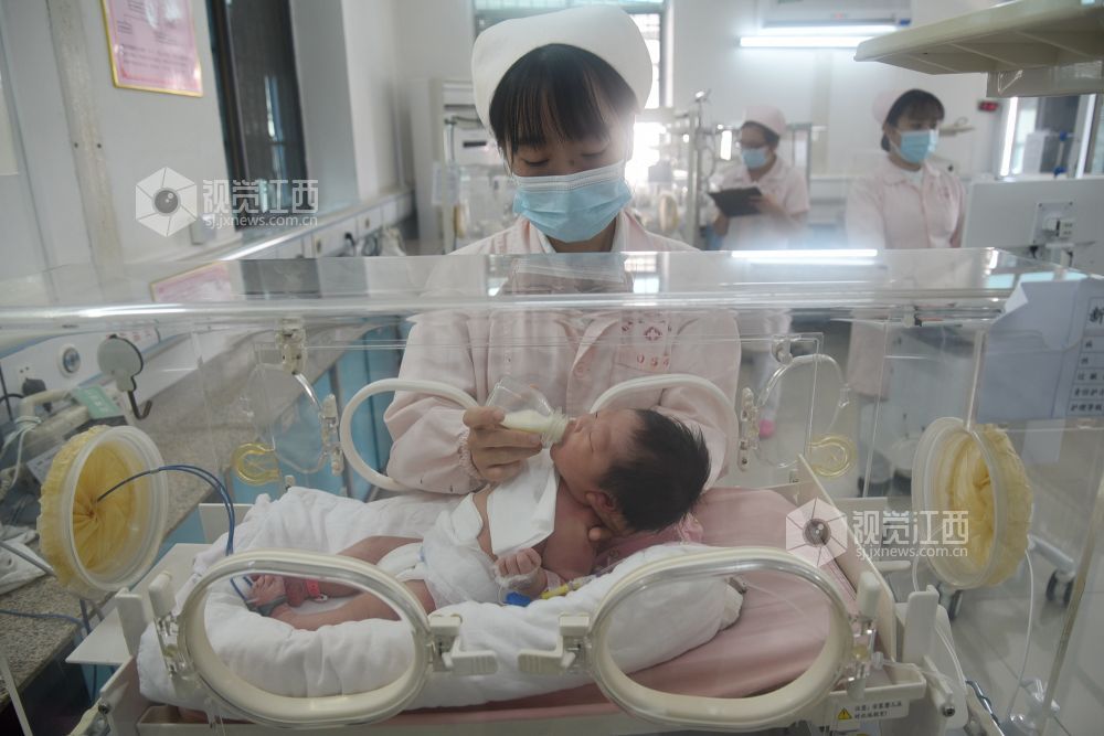 2020年10月1日,江西省抚州市南丰县人民医院新生儿重症监护室里一片忙碌身影。当日是国庆中秋“双节”,坚守在各自工作岗位上的人们以特有的方式庆祝“双节”。