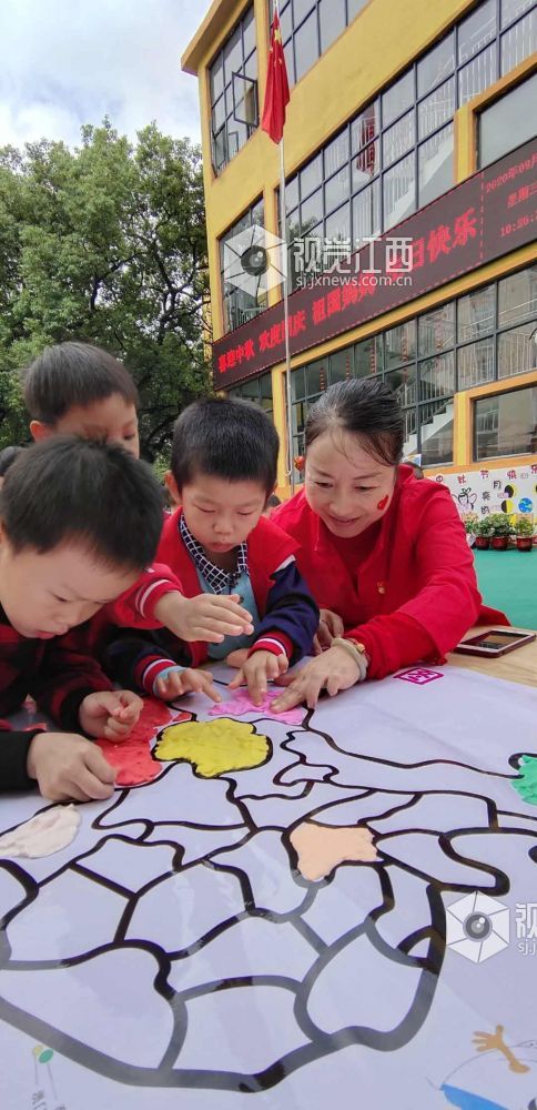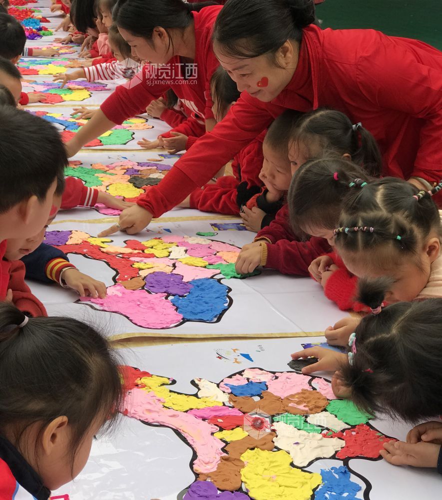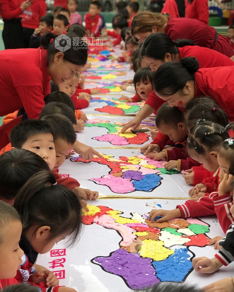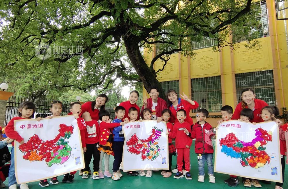 2020年9月30日,江西省吉安市泰和县机关幼儿园城东分园,小朋友们用彩泥把中国地图装扮得五彩斑斓。