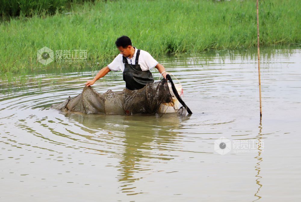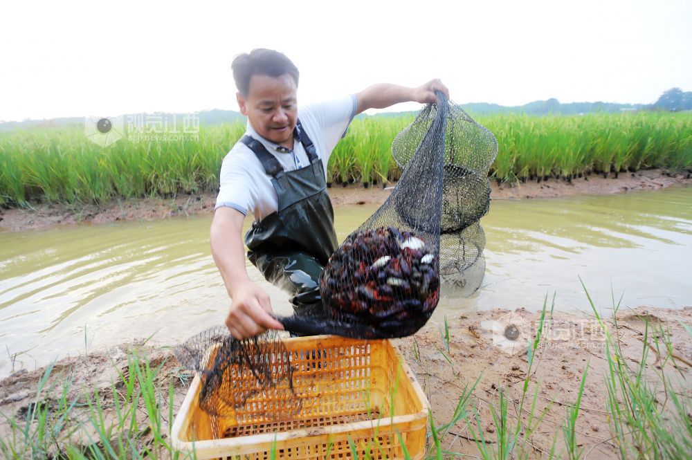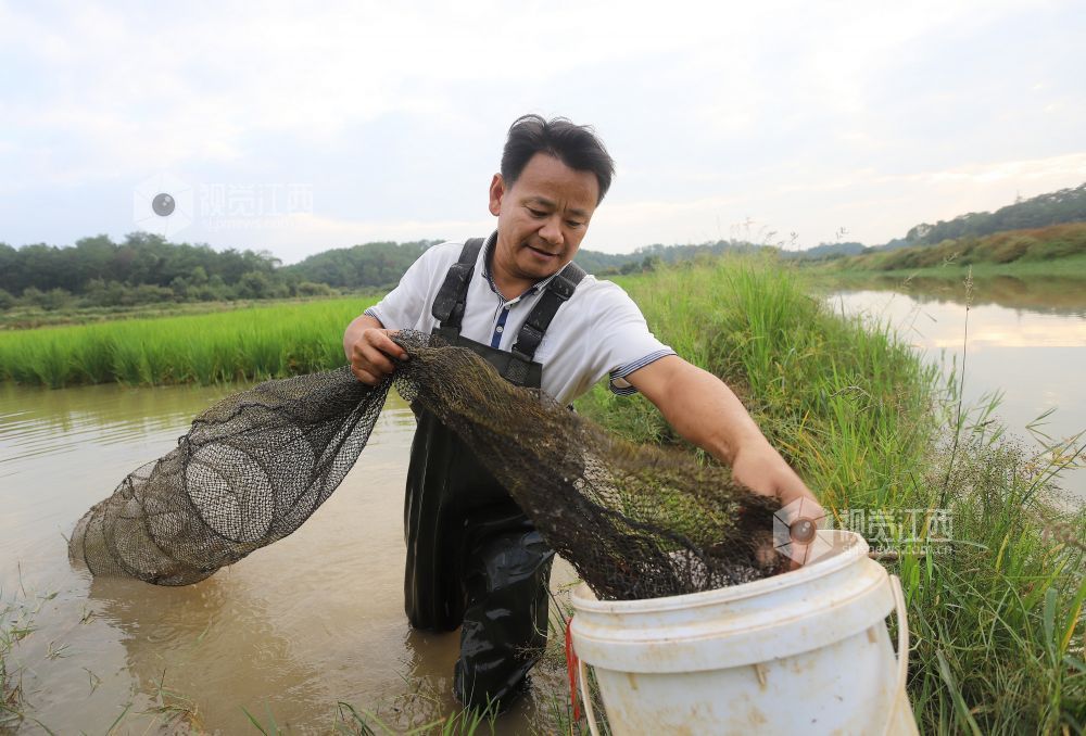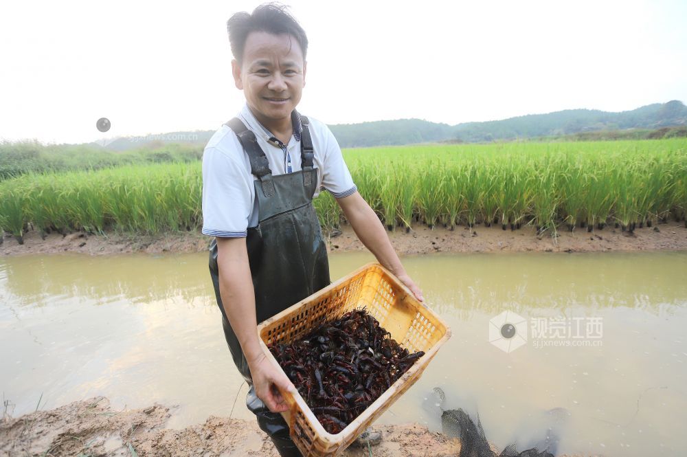 10月11日,江西省安福县竹江乡小车村村民刘新益在捕捞小龙虾。据了解,小车村建设稻虾种养基地1000余亩,在农业科技的助推下,基地粮食生产和小龙虾养殖取得双丰收,每亩综合效益达2000余元。眼下,基地民工抓住有利天气捕捞小龙虾供应市场。