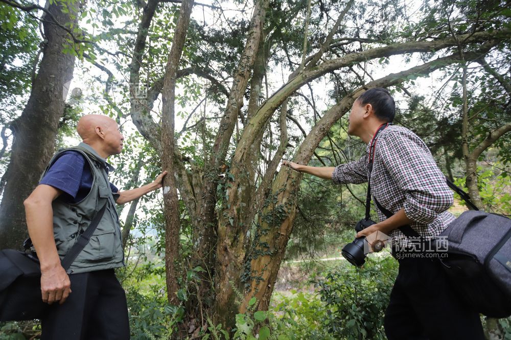 10月16日,江西省安福县林业工作者在该县彭坊乡陈山村调查三尖杉生长状况。三尖杉为古老的孑遗物种,是我国亚热带特有植物,属渐危树种。其叶形及其排列极为特殊,对于研究古植物区系很有价值。叶、枝、种子、根可提取多种药用植物碱,经临床试验,证明对治疗人体非淋巴系统白血病,特别是急性粒细胞白血病和单核型细胞白血病有较好的疗效。据初步测定,陈山村这棵三尖杉树龄约200余年,高约9米,该树离面50厘米处分出4根大枝。其树形优美,具有较高观赏价值。三尖杉常零星分布于常绿阔叶林中,如此高大的单株三尖杉实属罕见。目前,该县有关部门已对这株“宝树”采取了保护措施。