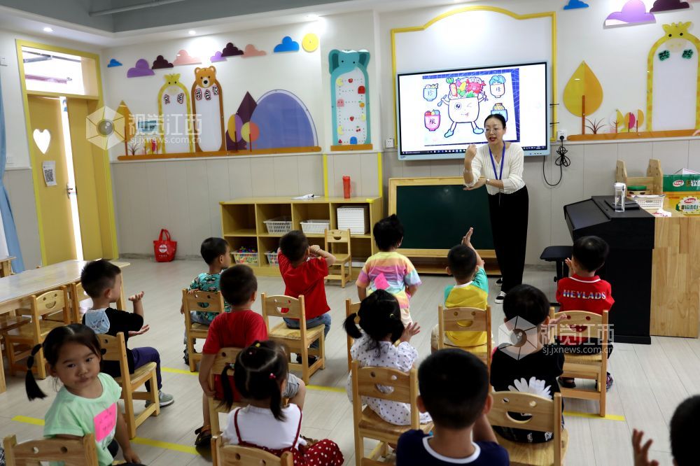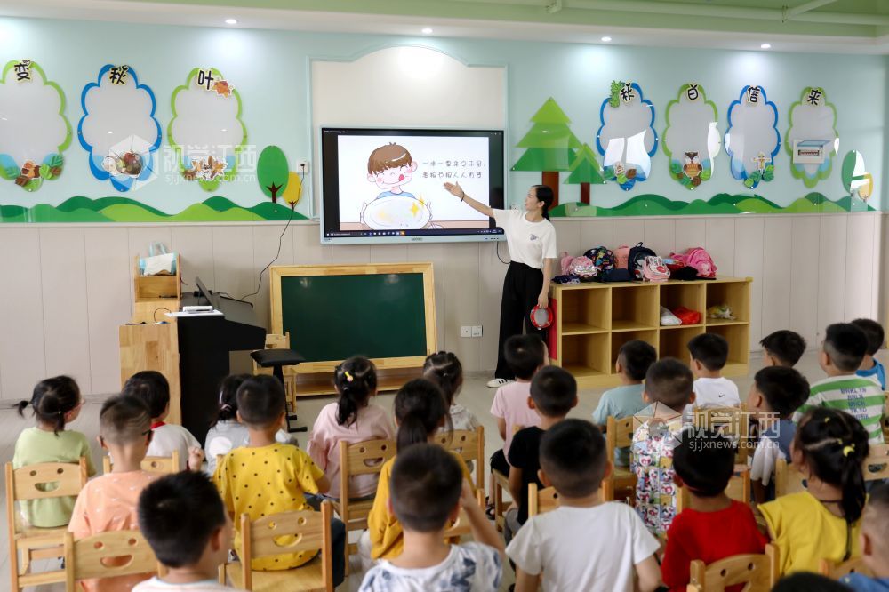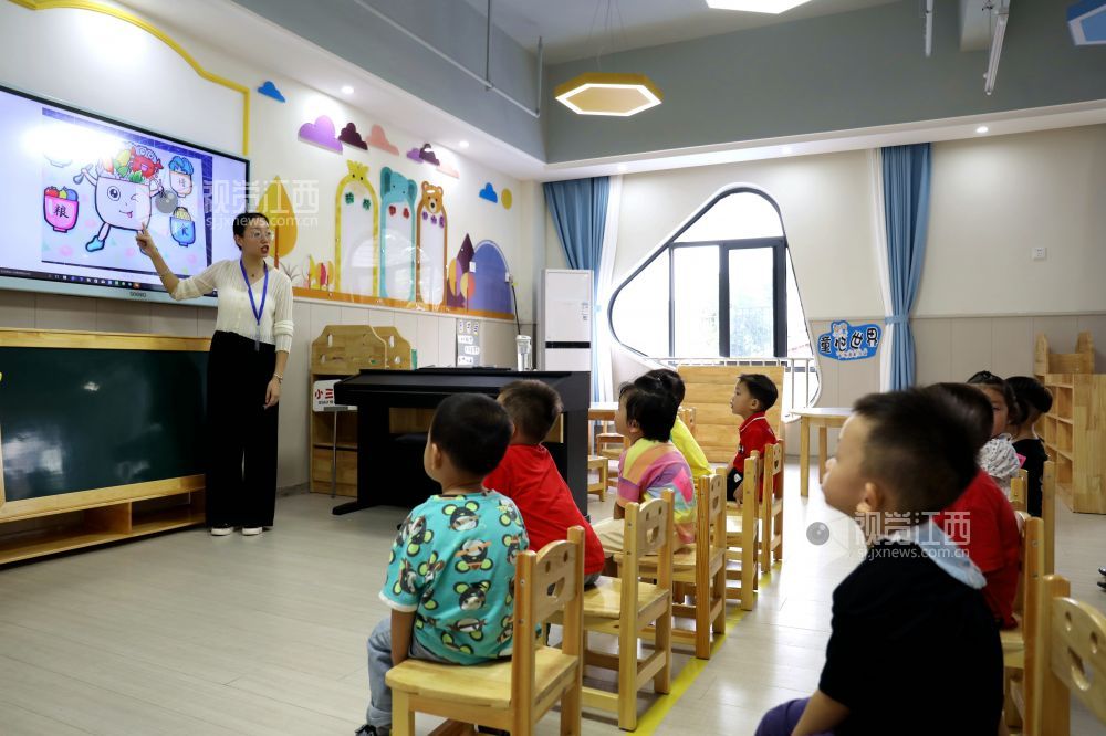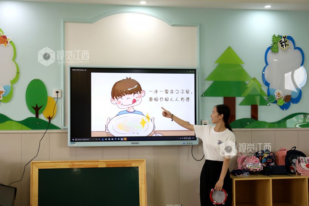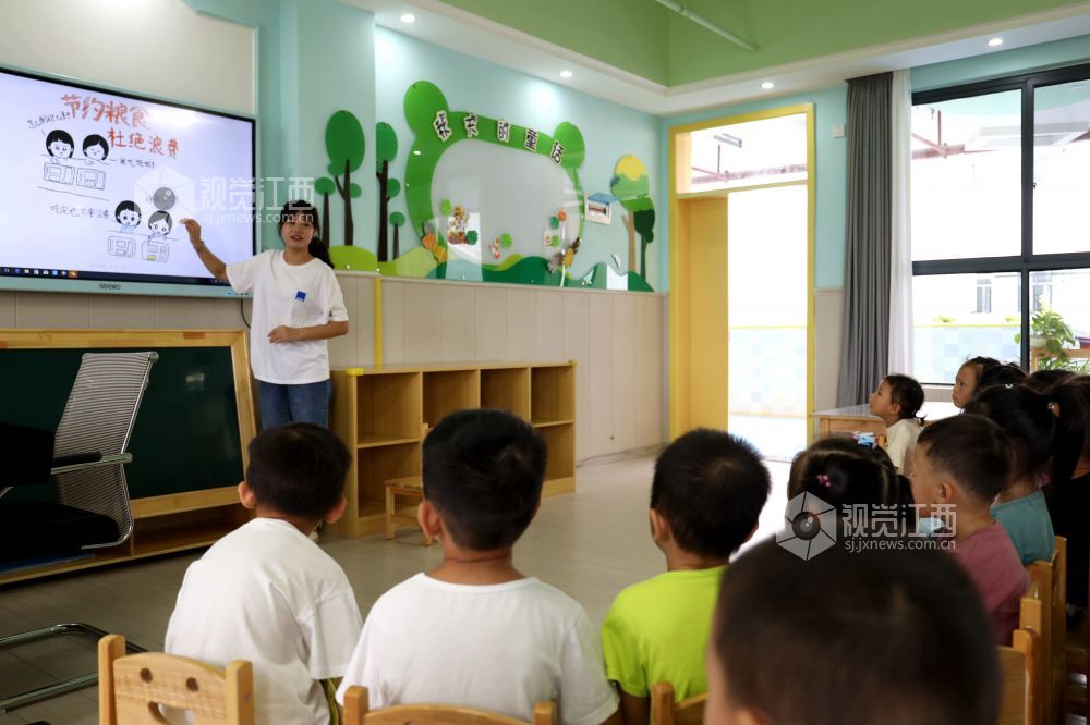 10月15日,江西省分宜县中心幼儿园钤景分园,老师在教孩子们认知丰收的粮食。当日,分宜县各地学校开展“爱惜粮食从我做起”主题教育活动,指导学生认识五谷杂粮,从小树立爱惜粮食、拒绝浪费的意识,迎接“世界粮食日”的到来。